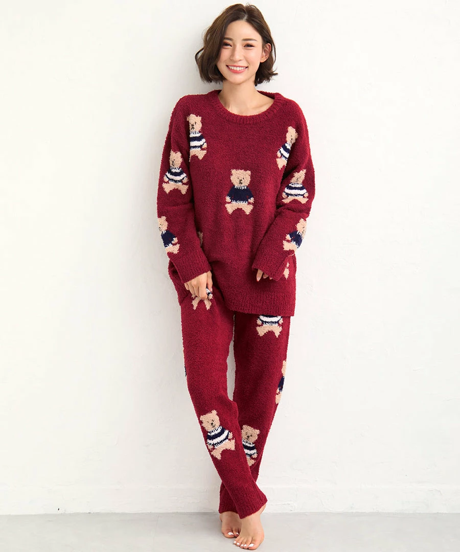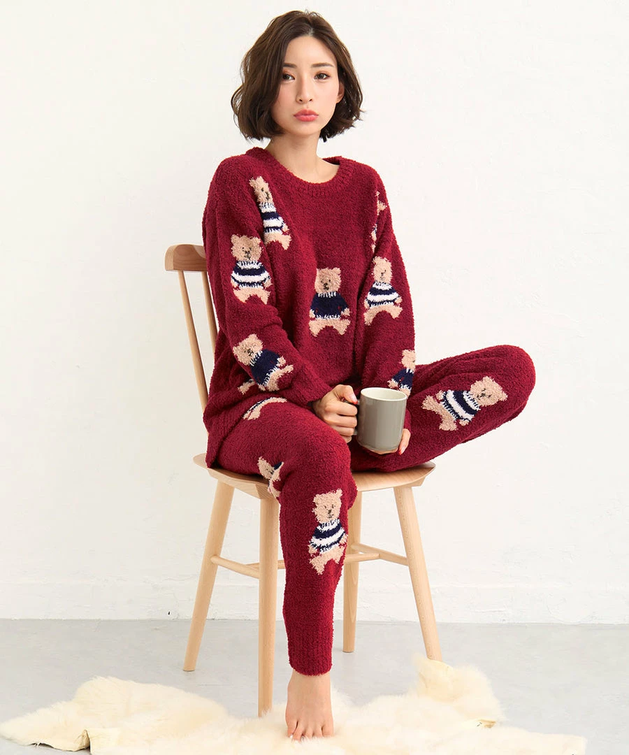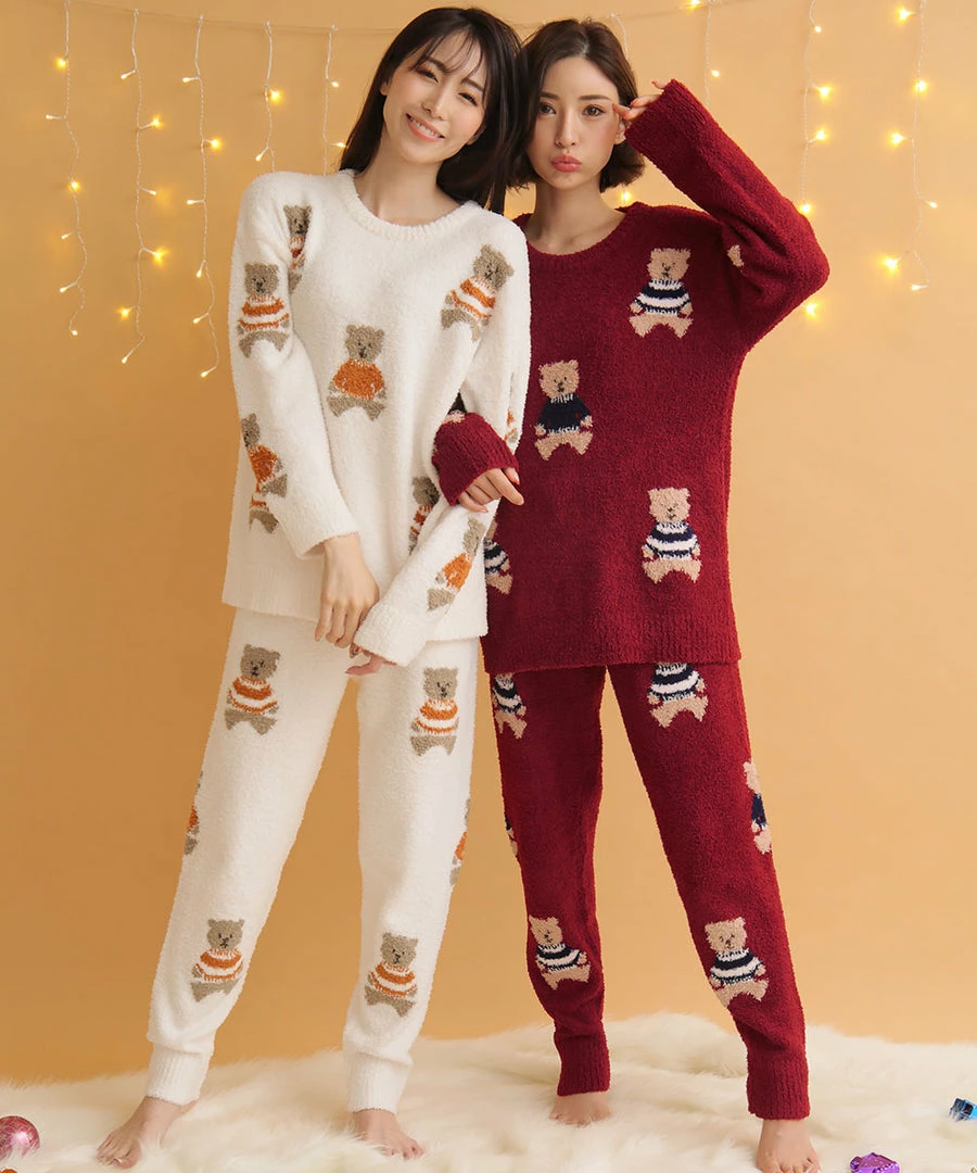 With a cute bear print, this loungewear is made of fluffy material that will keep you warm during the chilly time of year. The fabric feels soft and nice to the touch, making this top and bottom set ideal for relaxing or as pajamas.