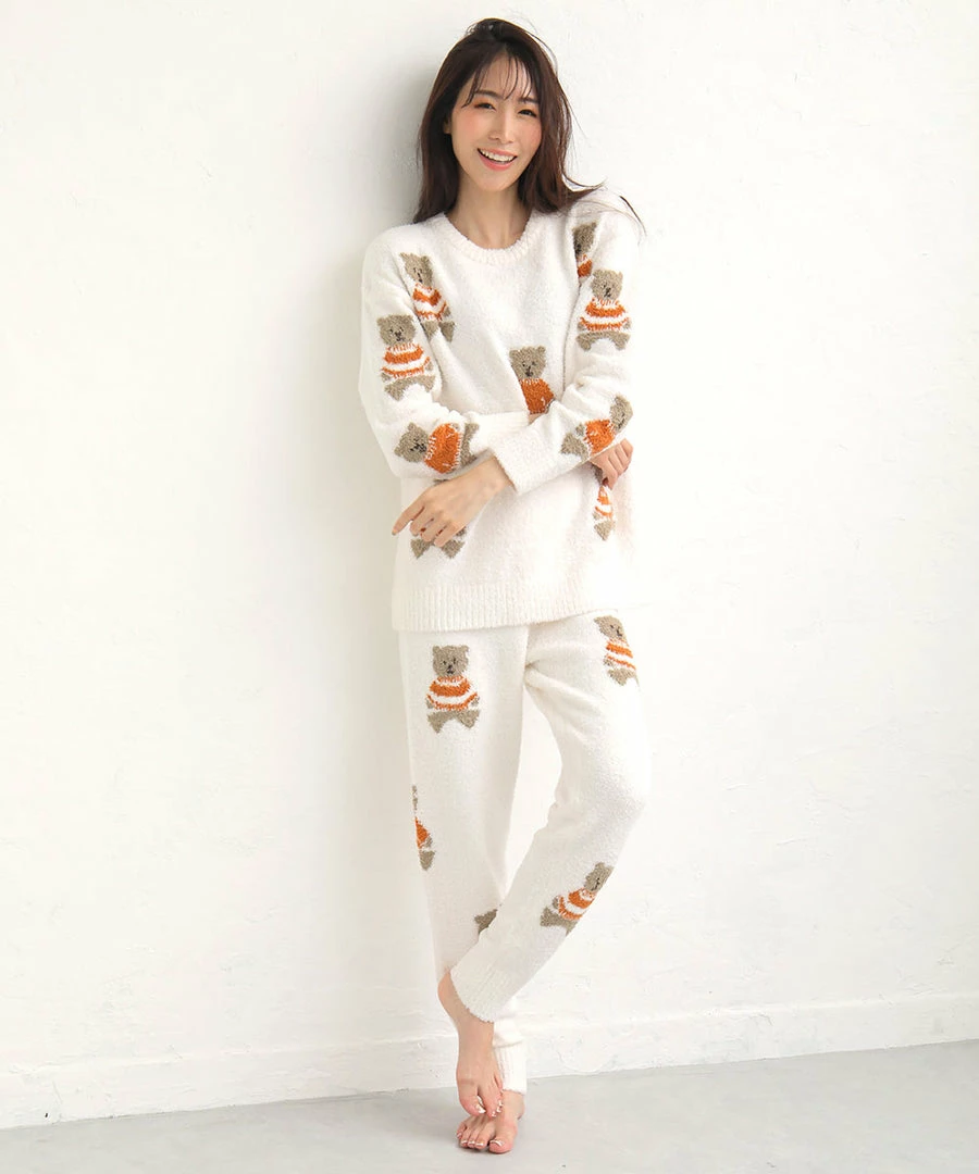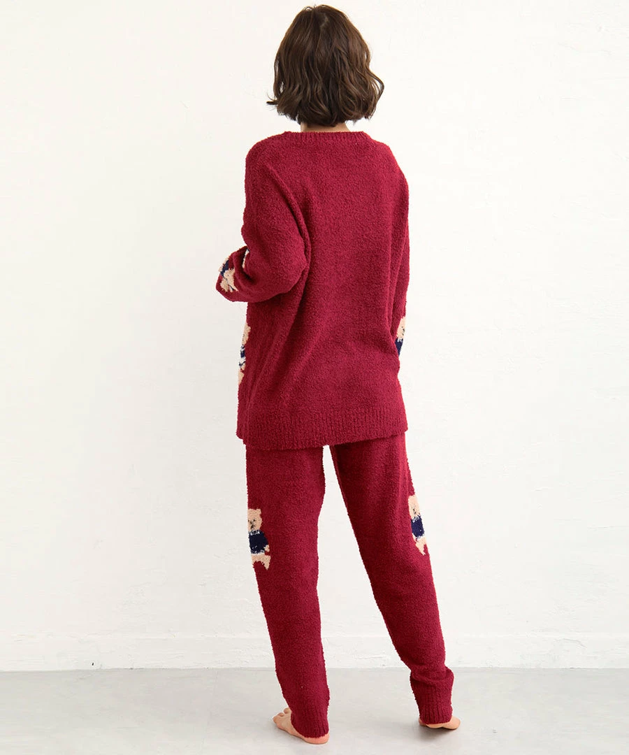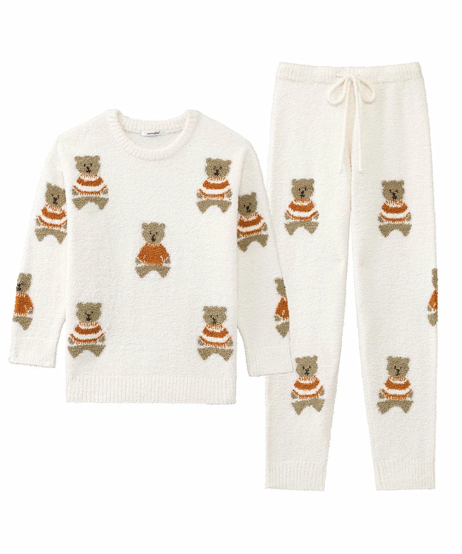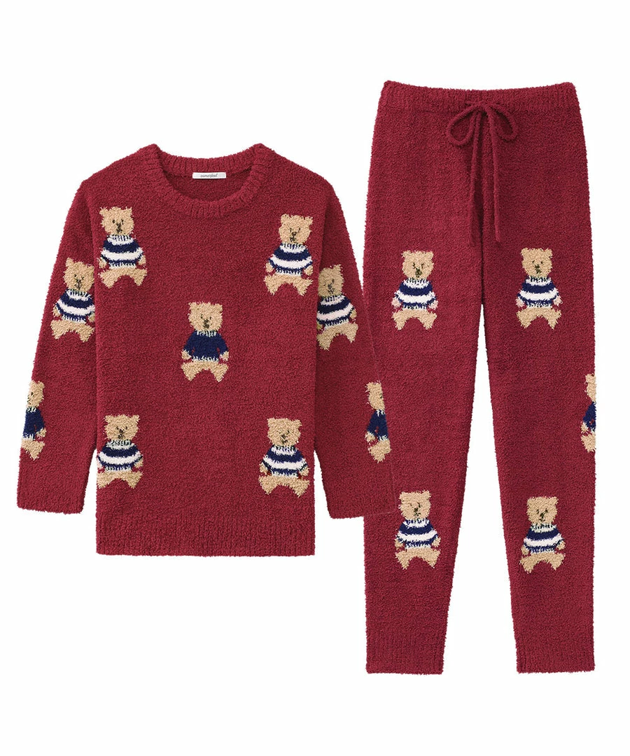 With a cute bear print, this loungewear is made of fluffy material that will keep you warm during the chilly time of year. The fabric feels soft and nice to the touch, making this top and bottom set ideal for relaxing or as pajamas.