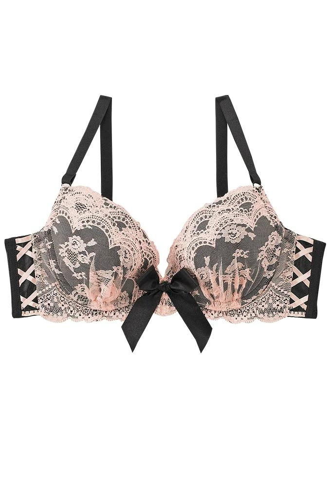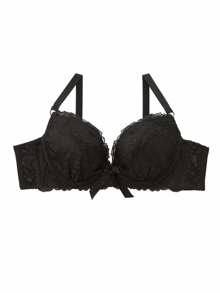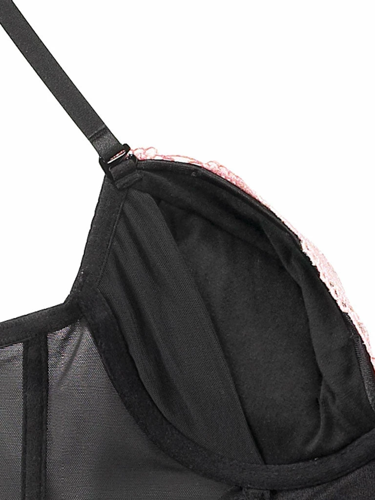 A fancy lingerie for your special night. This bra has a higher cut than standard bras, providing plenty of support under the bust. Side panels on the bottom of the cups stop the bust from shifting sideways.