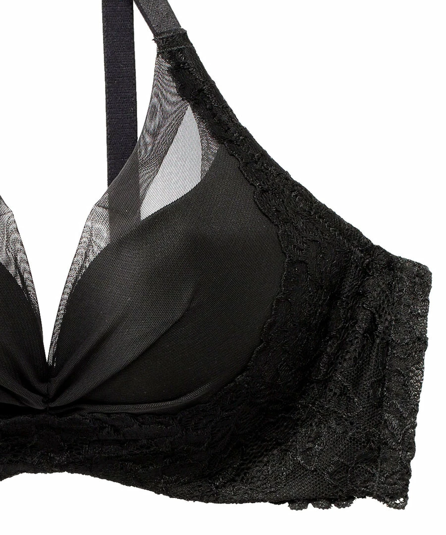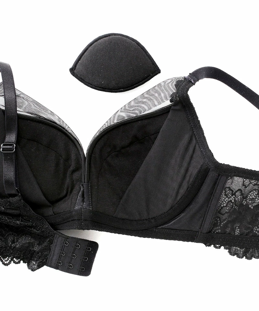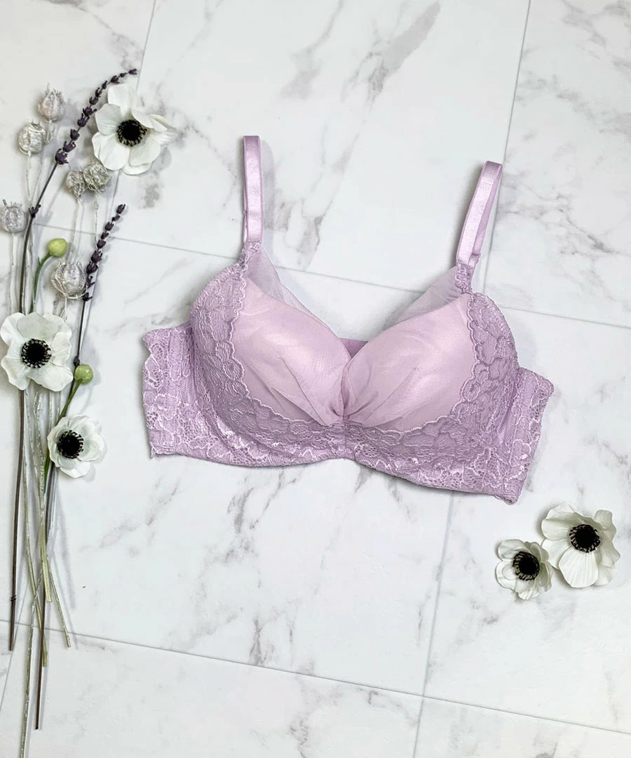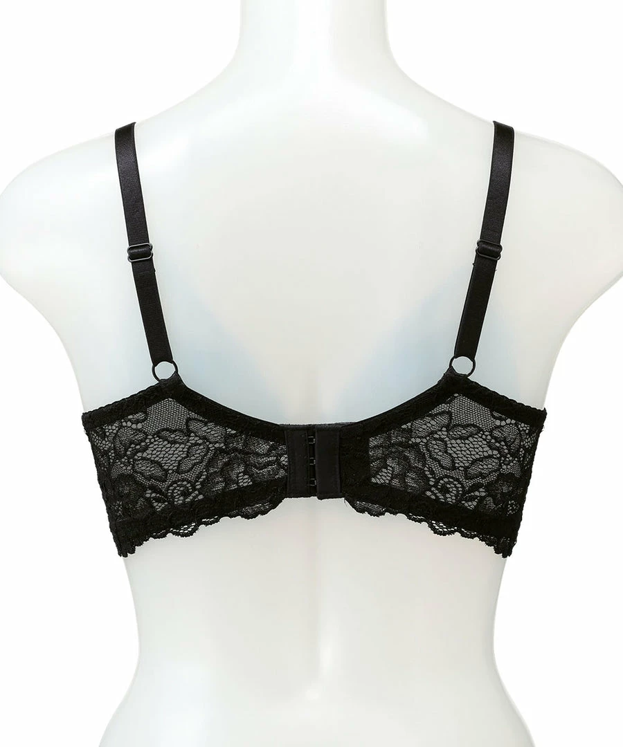 Made with the same L-shaped underwire as our popular Side Slimming Lacy Push-Up Bra, it’s a shaping bra with no discomfort. Side support bones gather and lift the bust for a nice, clean underarm line. Lace panels on sides of cups also help lift and support. Powernet on the inside of the cups and the side panels prevent the bust from slipping out to the sides and enhance cleavage. Designed with bra cups in glossy satin overlaid with tulle and delicate flower lace from the side of the cups to the back band, it is both classy and elegant.