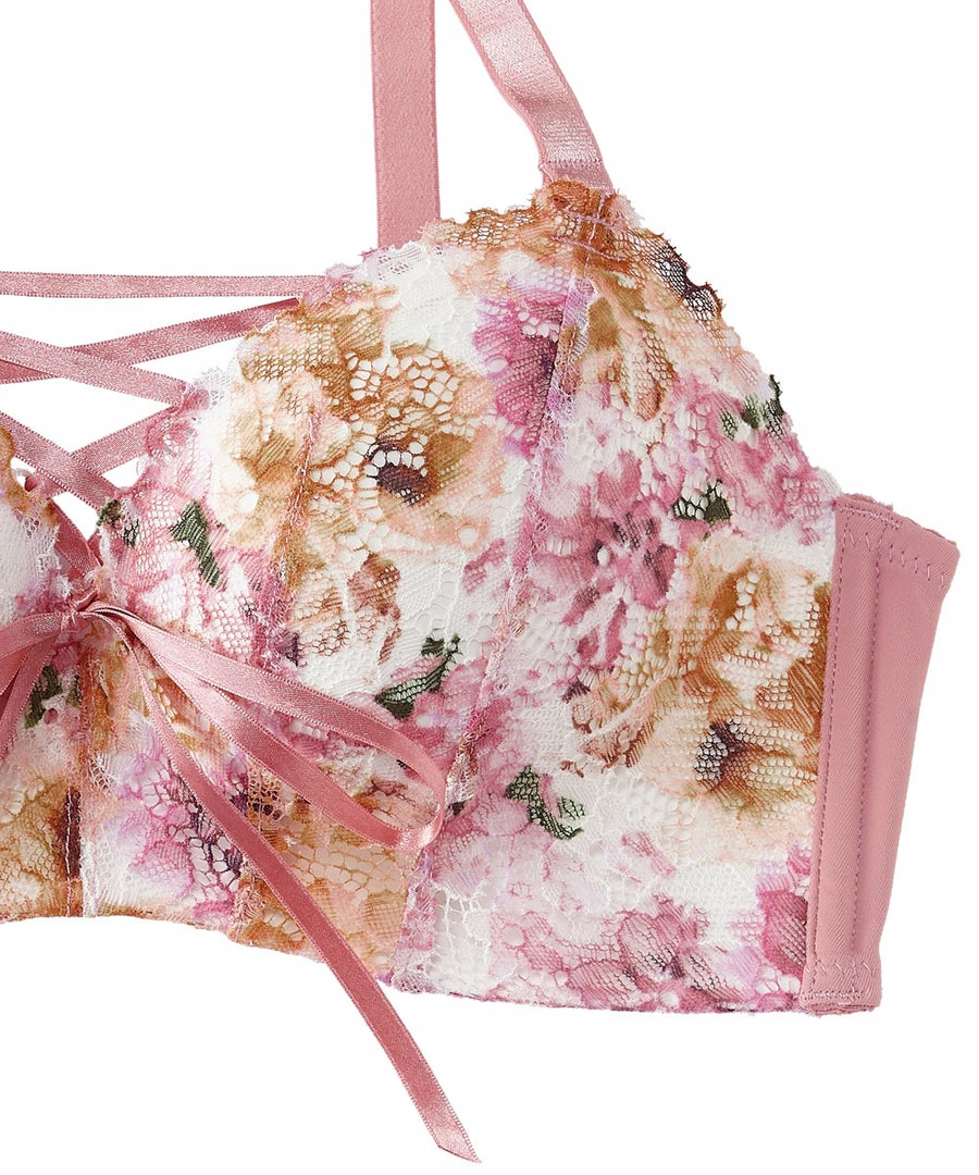 A sexy design featuring a pale flower print lace and laced up at the front.