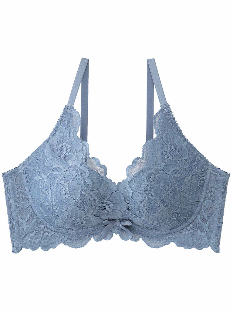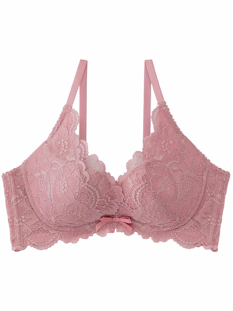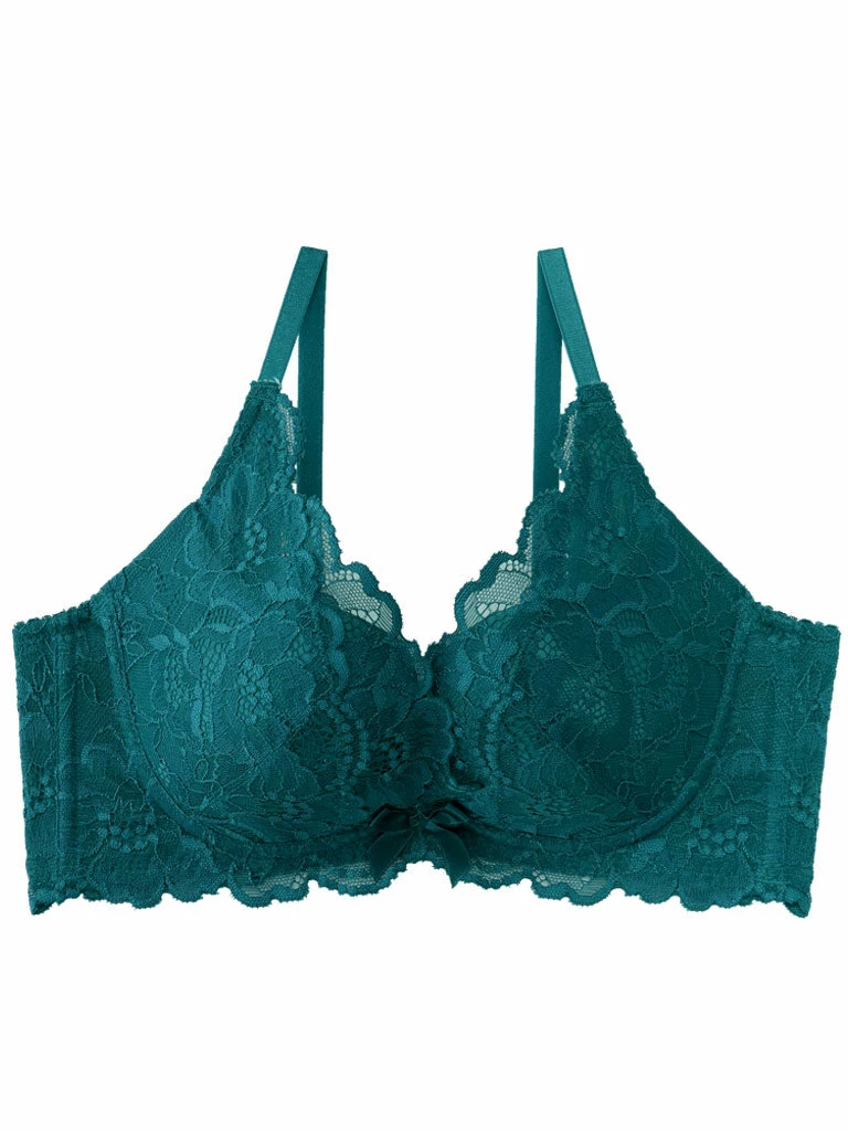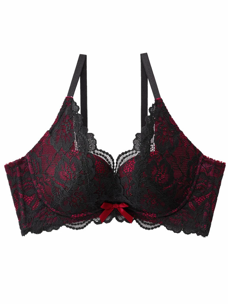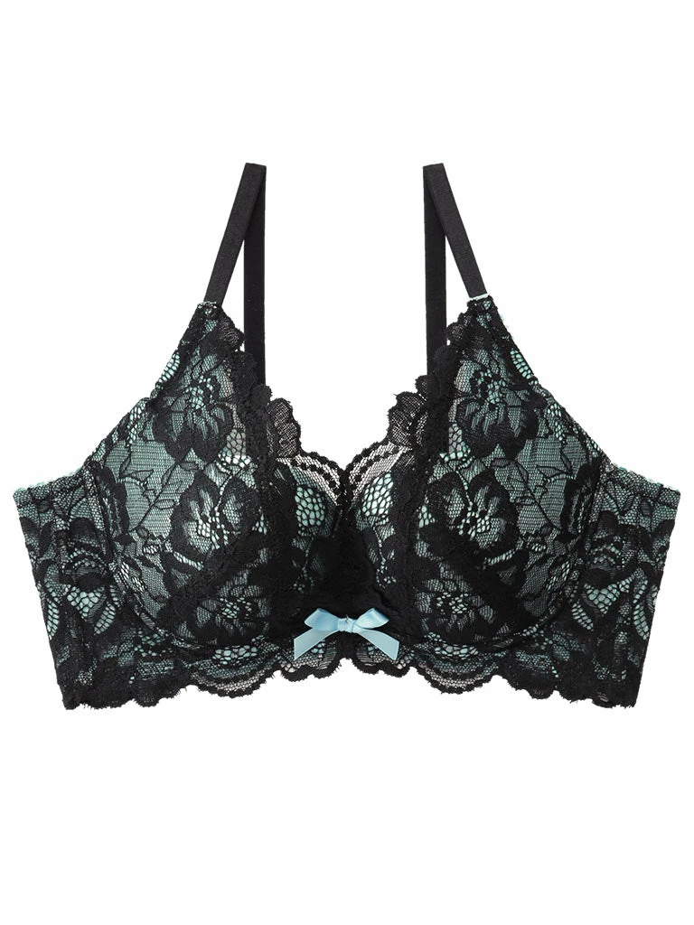 It has layered lace from the cups to the straps, keeping the cleavage in check.
