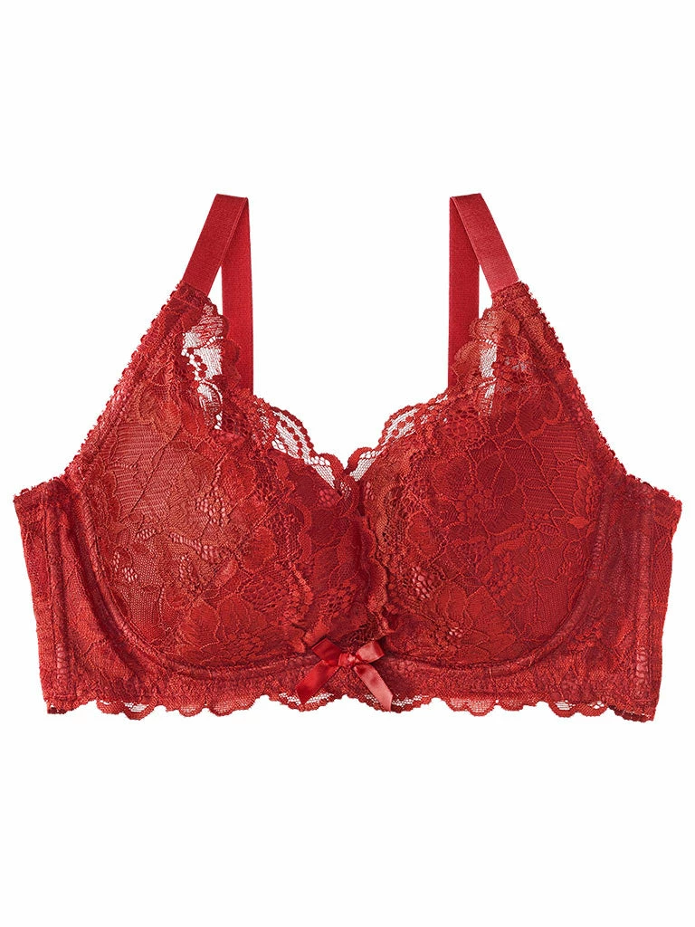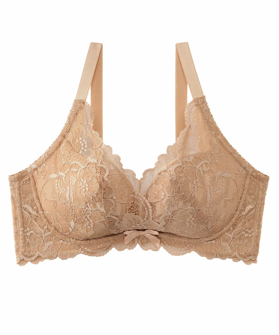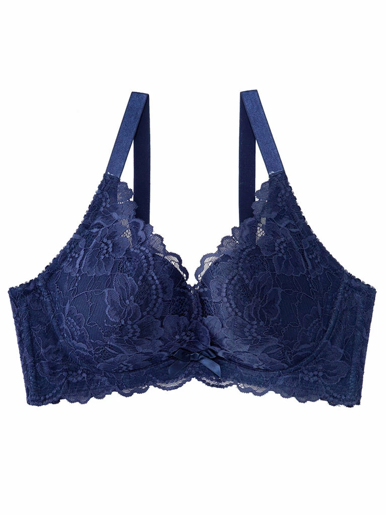 It has layered lace from the cups to the straps, keeping the cleavage in check.