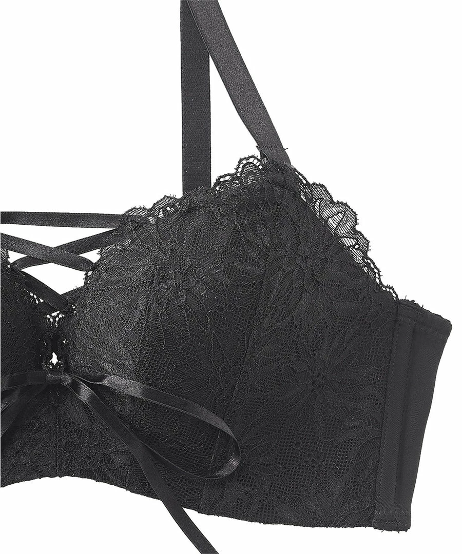 This lace-up type has a cleavage boosting function where you pull the ribbon on the front to gather your bust from the left and right into the center.