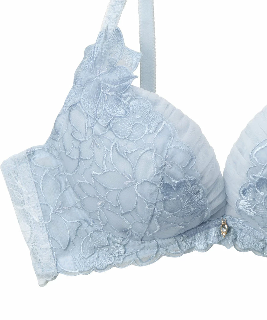A Side Support Bra with a gorgeous flower motif overlapping on embroidered lace.