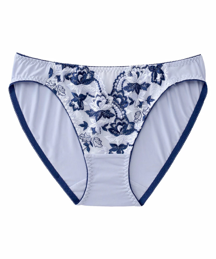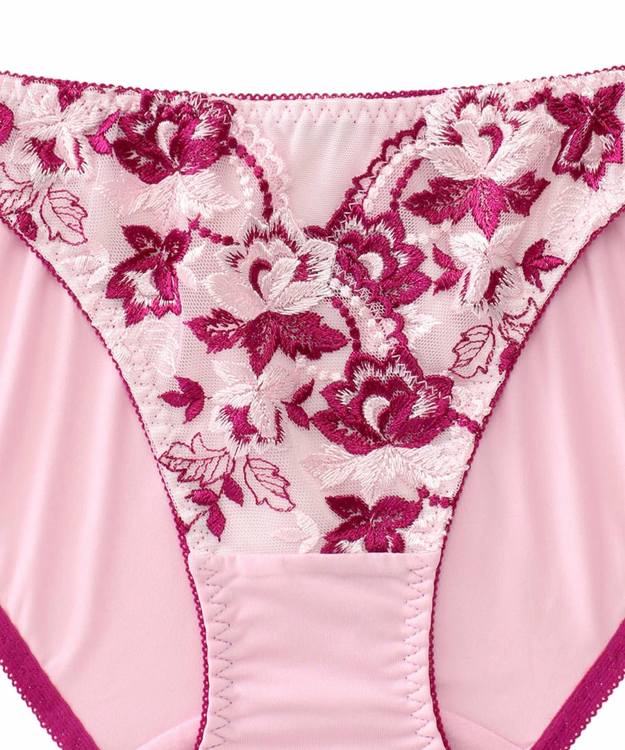 Bikini panty of tulle fabric with lots of elegant flower print embroidery.