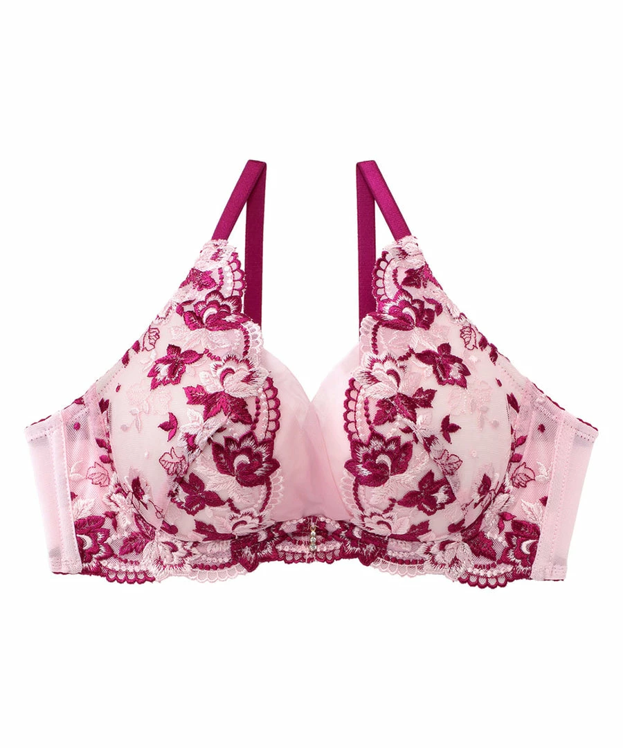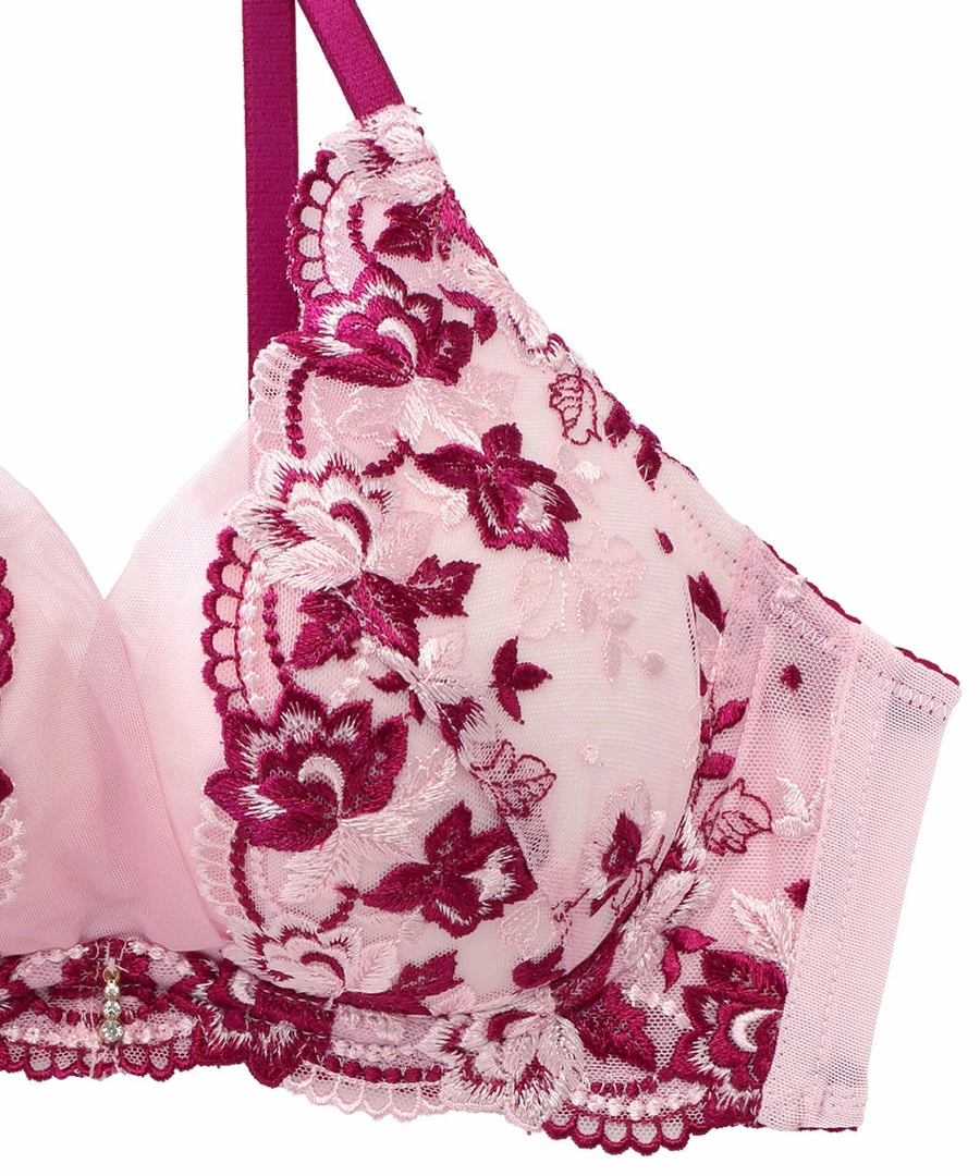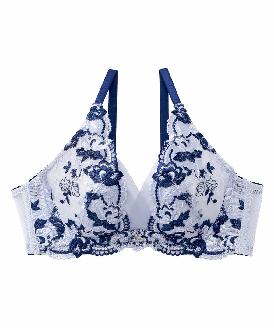 A brassiere of tulle fabric with lots of elegant flower print embroidery.