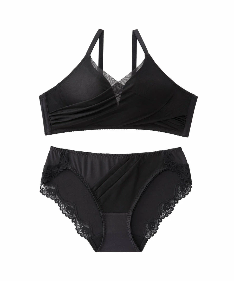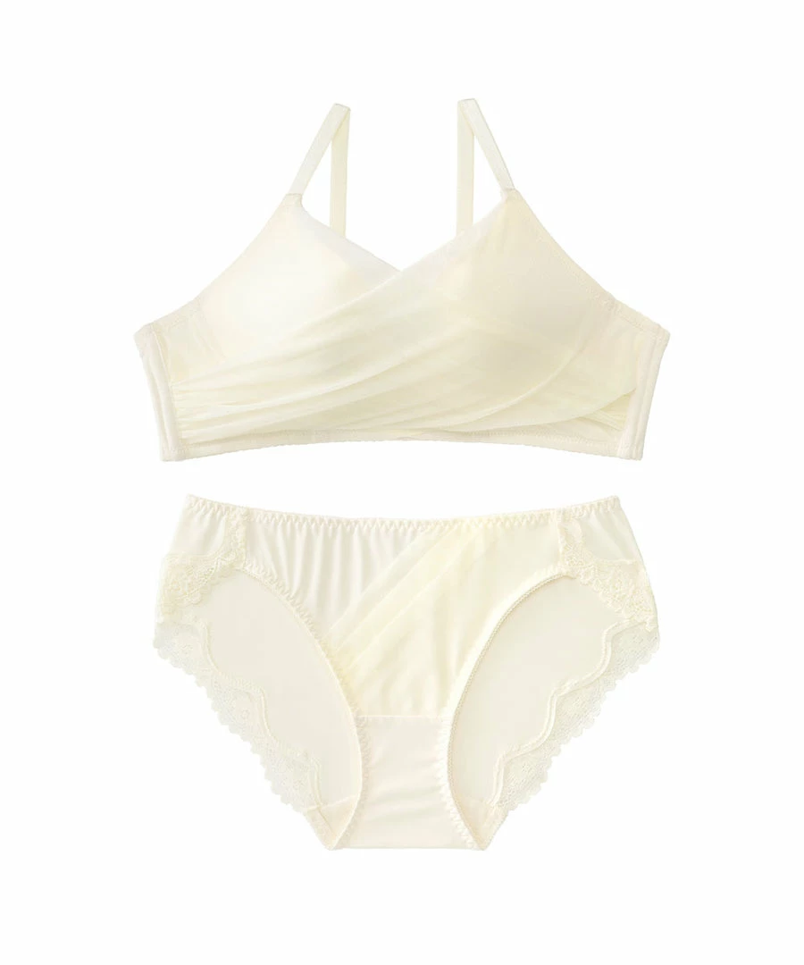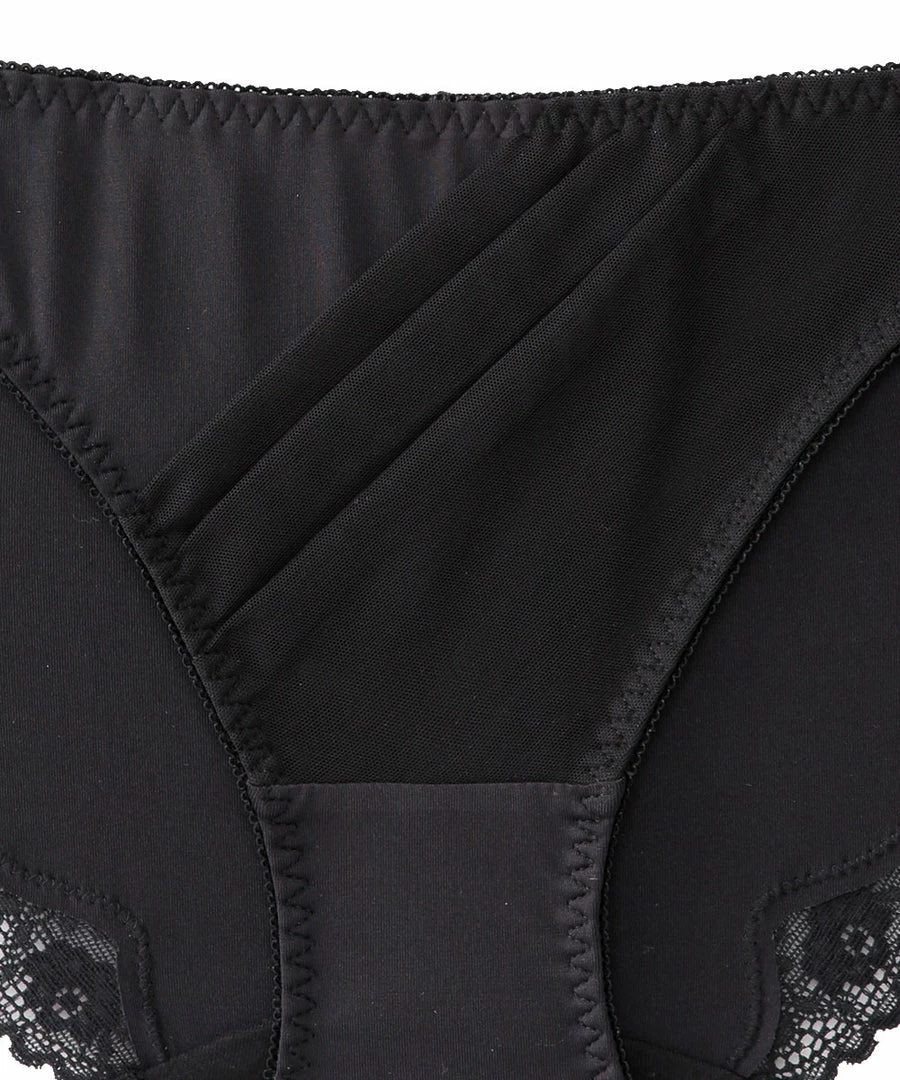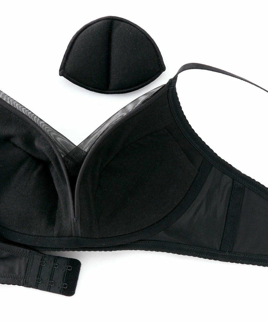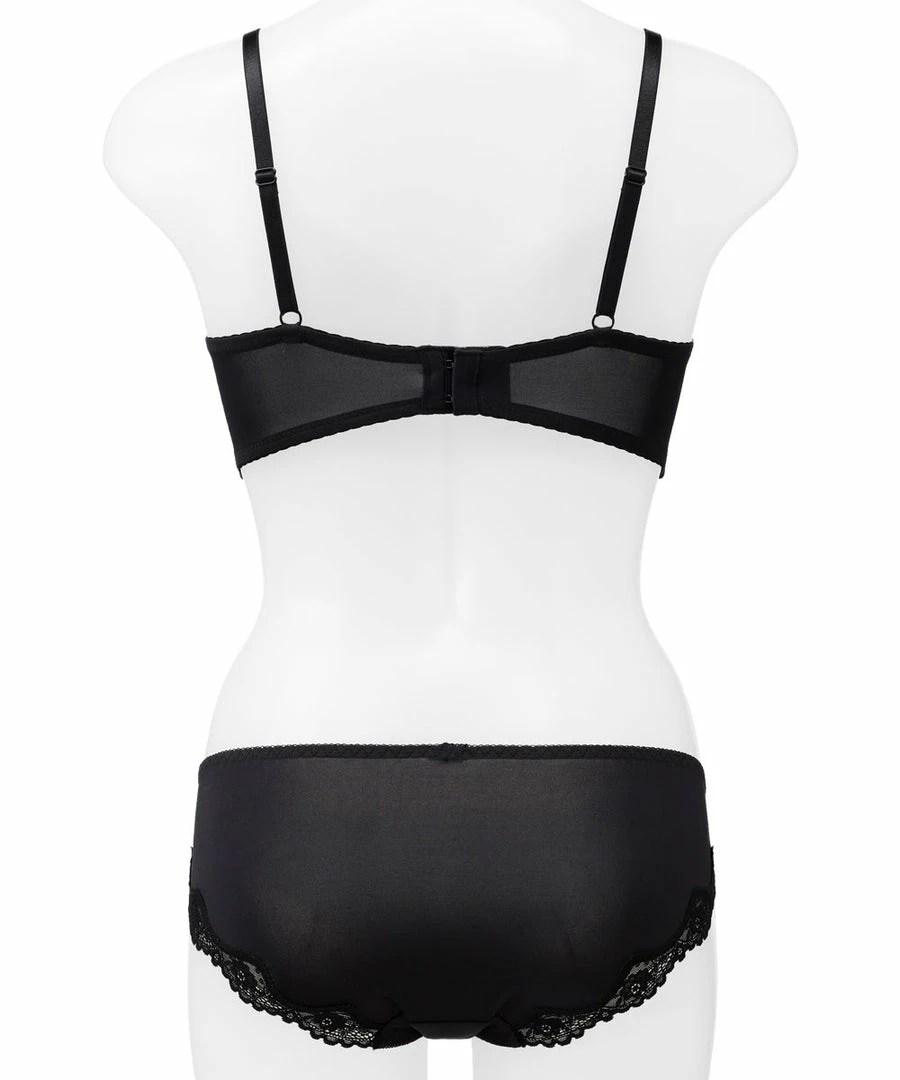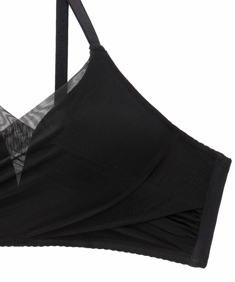 The brassiere fabric is crossed at the front for greater lift. Also, the central area of the back of the cups is sewn to hold your cleavage in place.
