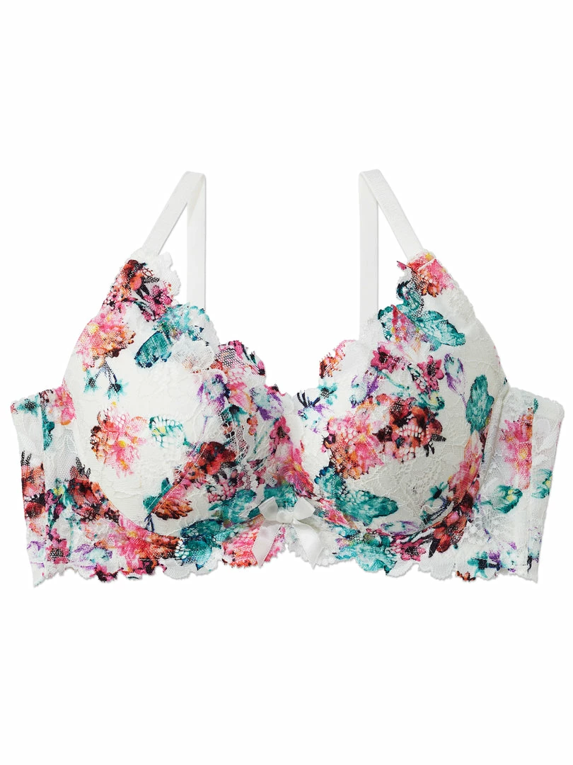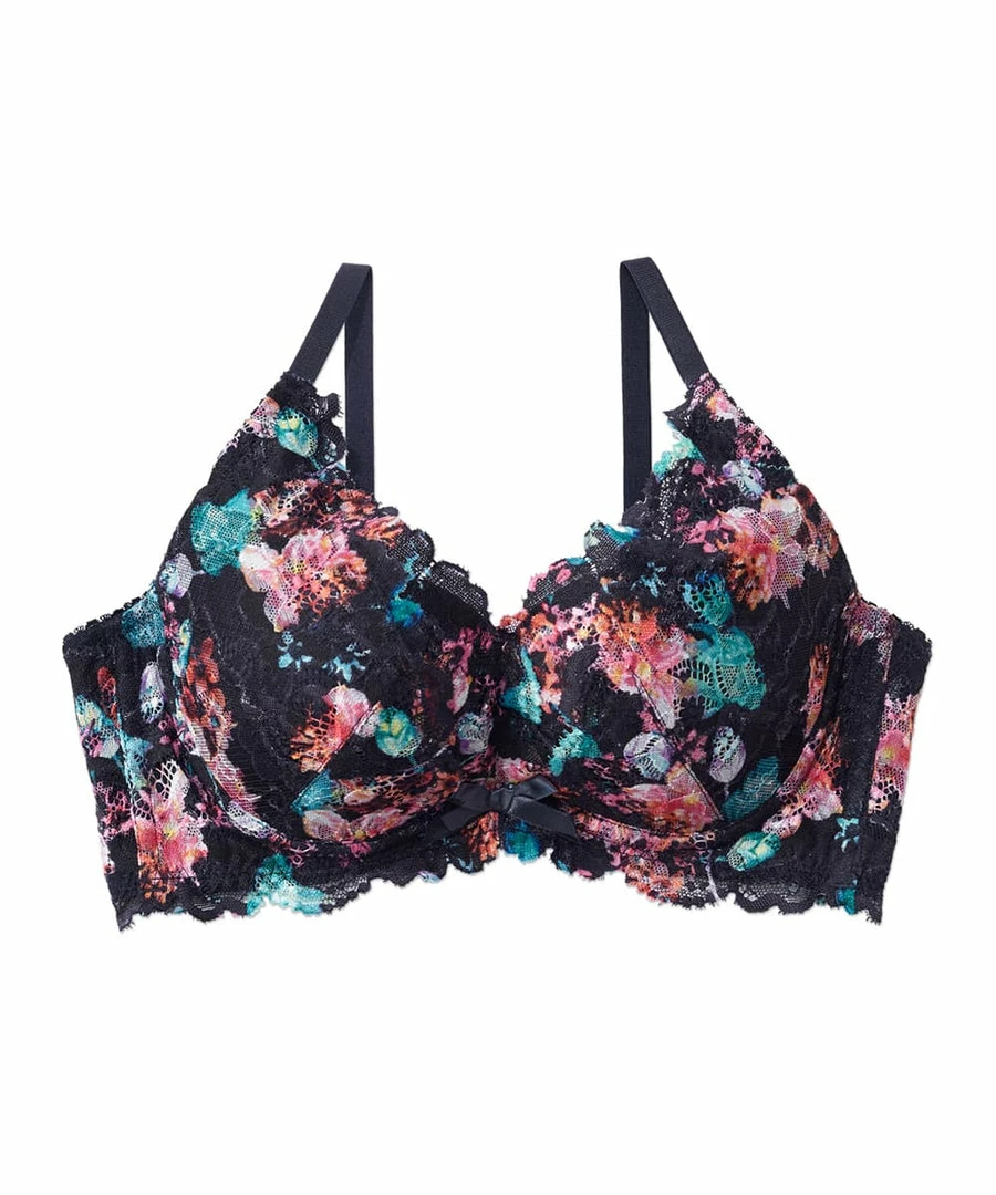 Lace Bra in Flower Cache-coeur. Shaping bra with no discomfort! Compared to traditional bras, this piece shapes and enhances the bust from the sides and back. It has layered lace from the cups to the straps, keeping the cleavage in check.