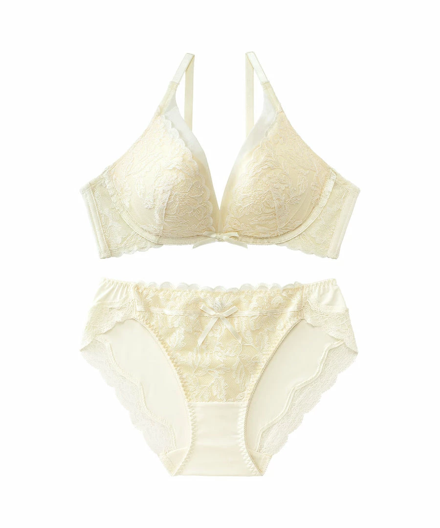 Side-slimming & wireless for a beautiful bustline. Lifts and gathers the bust to create a natural and amazing cleavage without the help of wires. Side support bones gather and lift the bust for a nice, clean underarm line. Powernet on top of cups prevents the bust from slipping out to the sides. Stitching on the center of the back of the cups helps to keep the bust gently in place. Embellished with glamorous flower lace and accented with a satin ribbon.