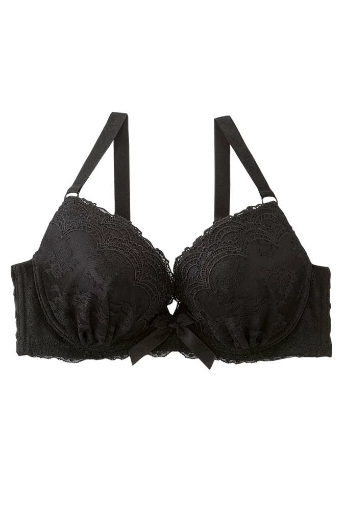 A fancy lingerie for your special night. This bra has a higher cut than standard bras, providing plenty of support under the bust. Side panels on the bottom of the cups stop the bust from shifting sideways. The U-shaped back prevents the shoulder straps from slipping. F, G, H Cup