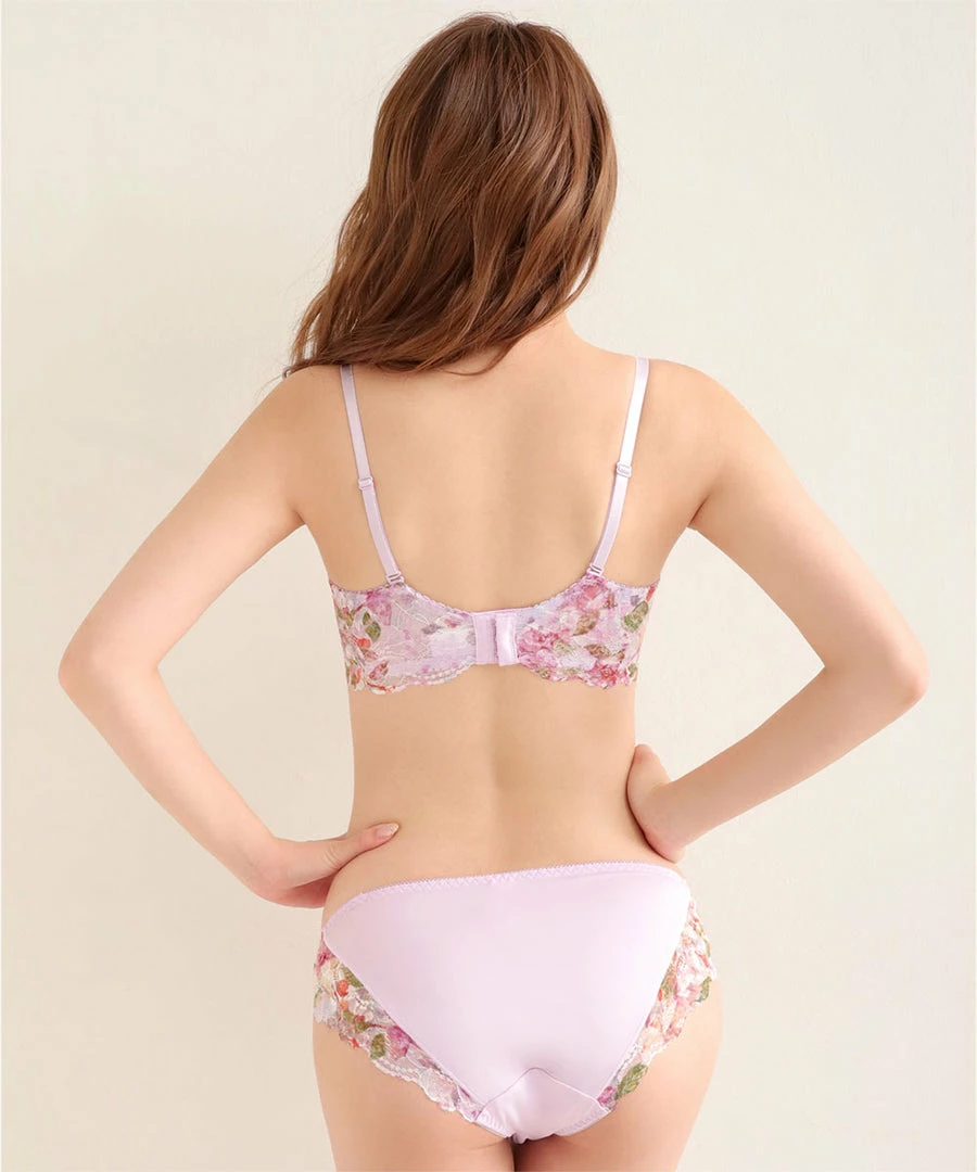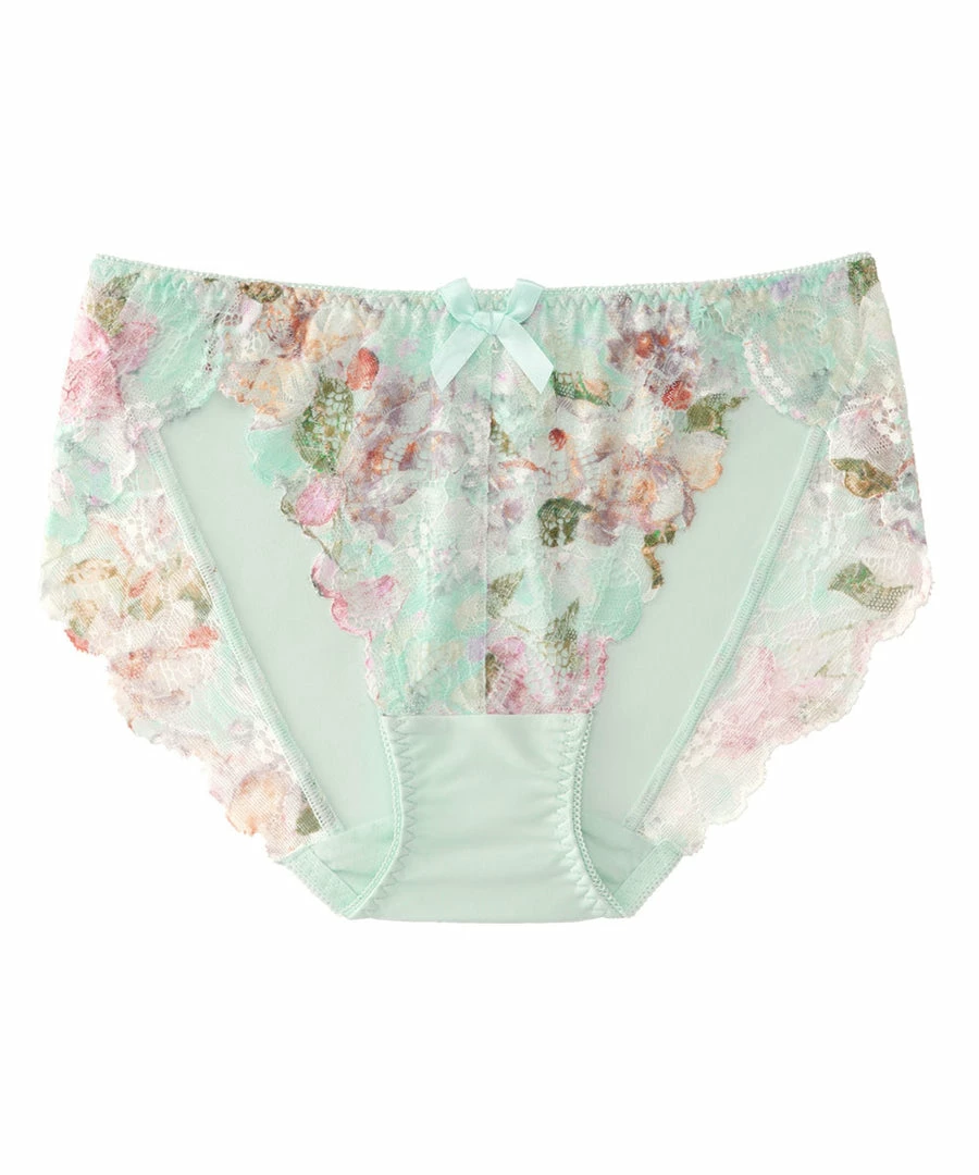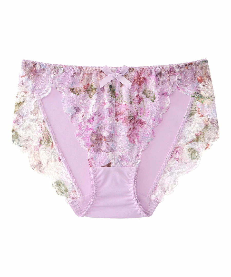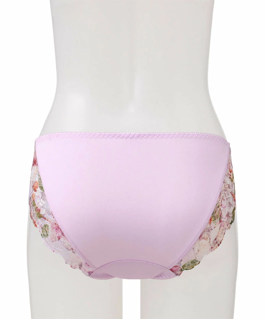 Elegant floral lace bikini panty with colorful flowers that bring to mind a spring garden. A design that conveys a sense of sweetness amidst the elegance.