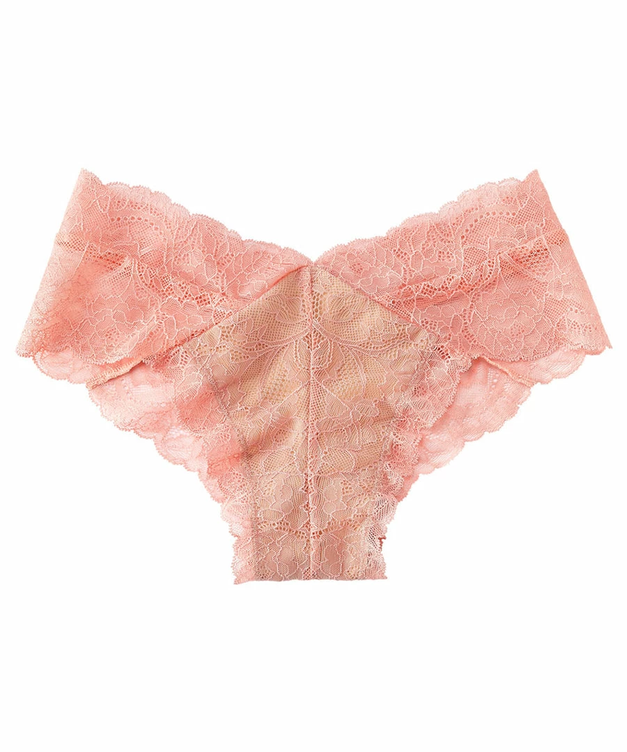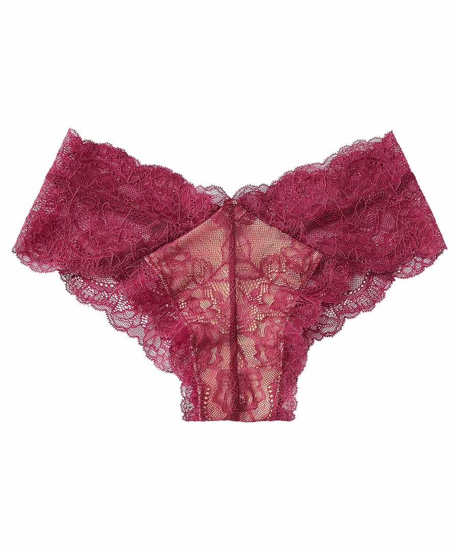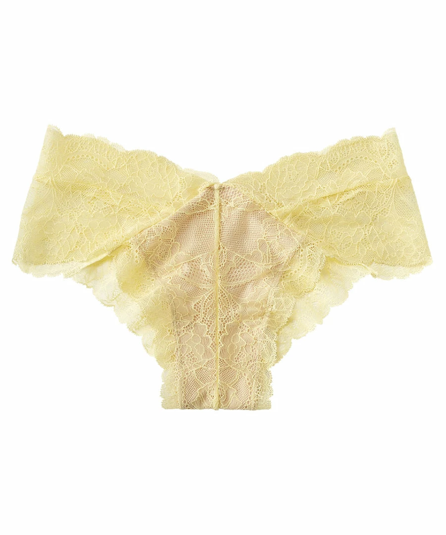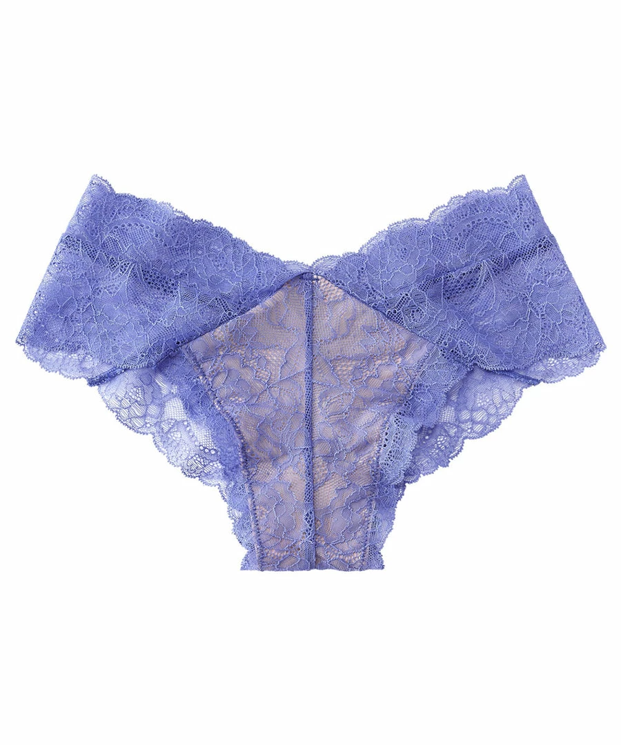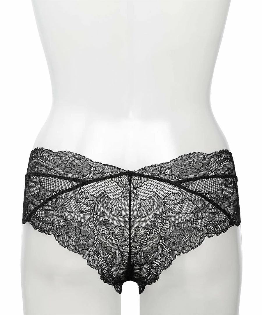 Back style with very sexy see-through lace. “Cheeky Cut” has less coverage on the back than a plain panty, but doesn’t cut into the skin like a thong.