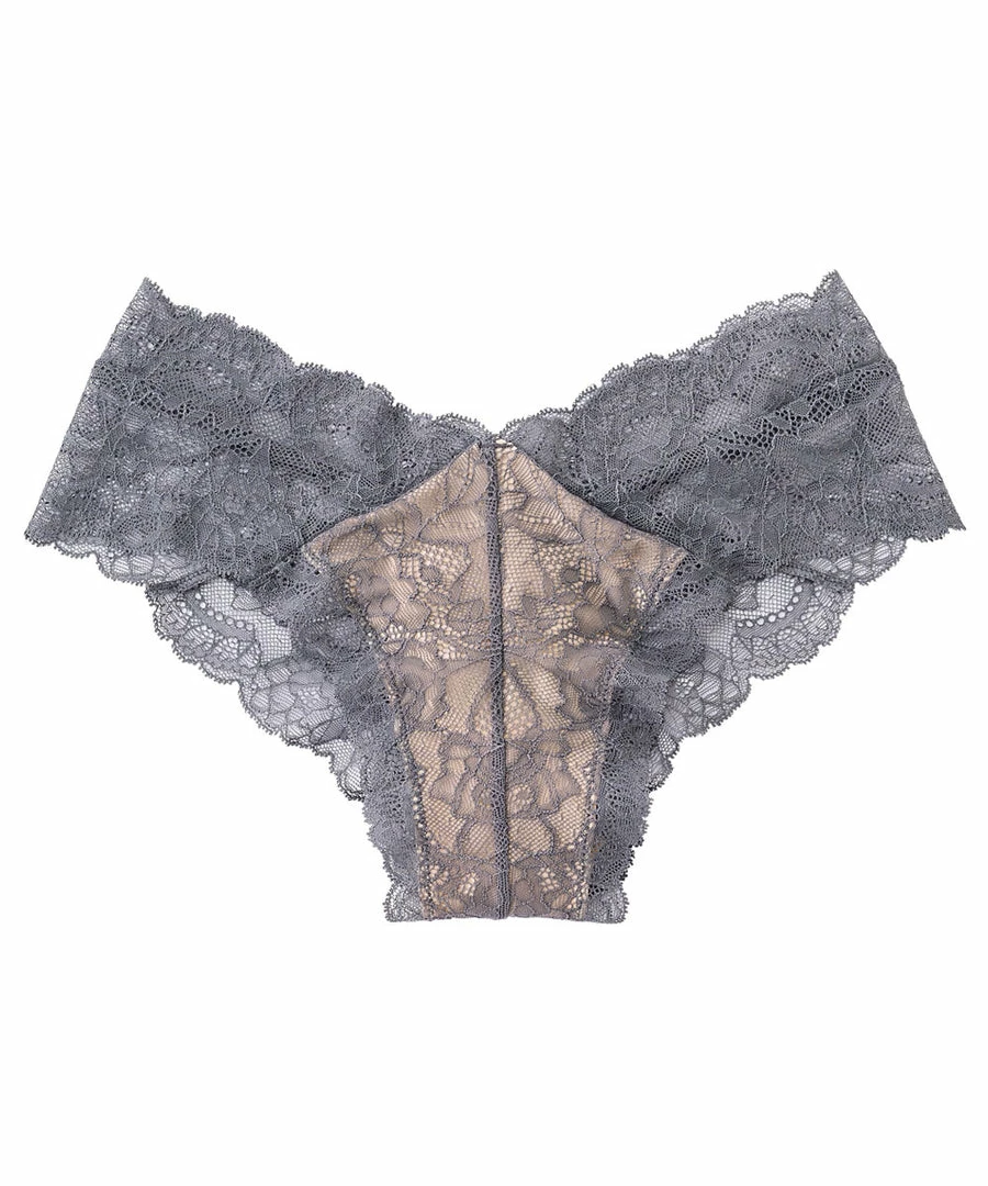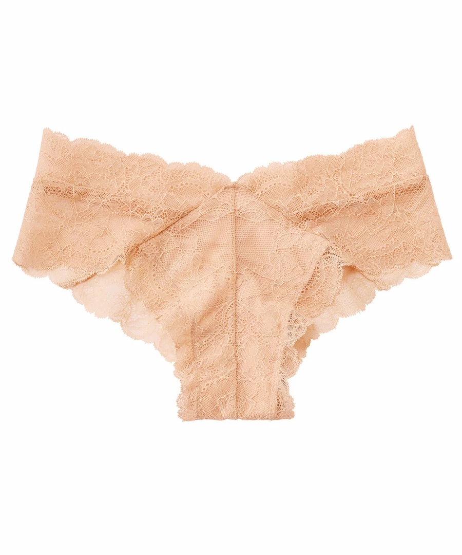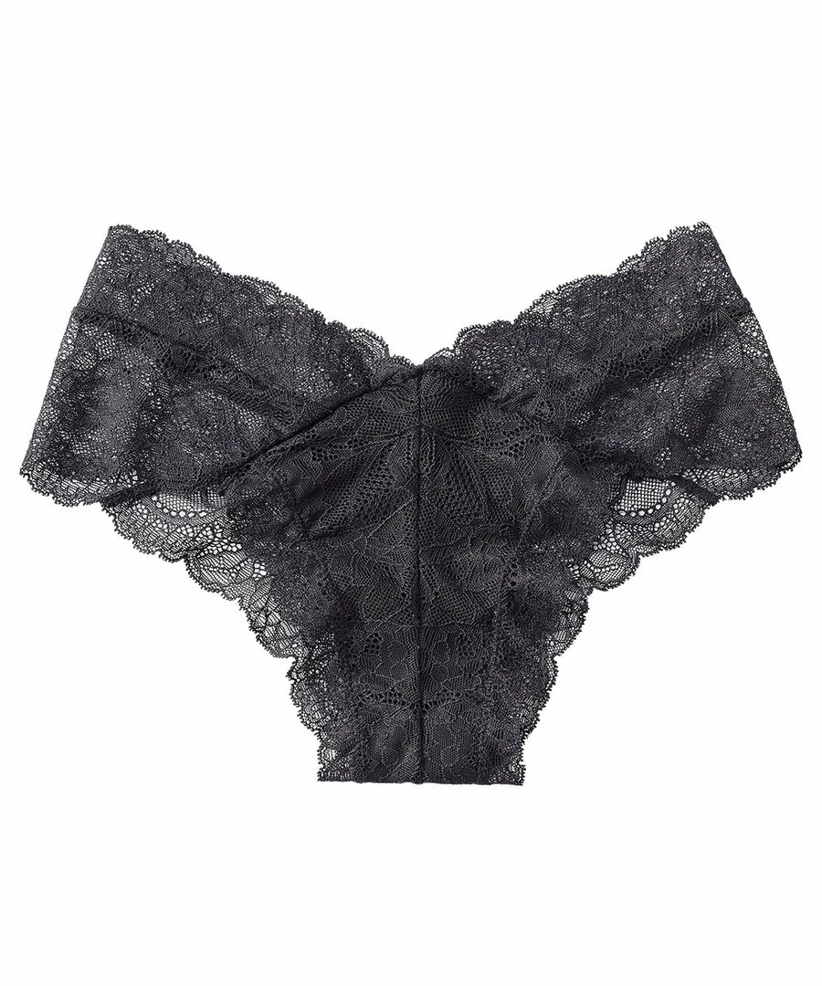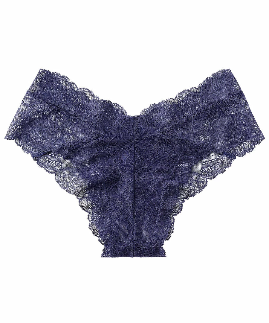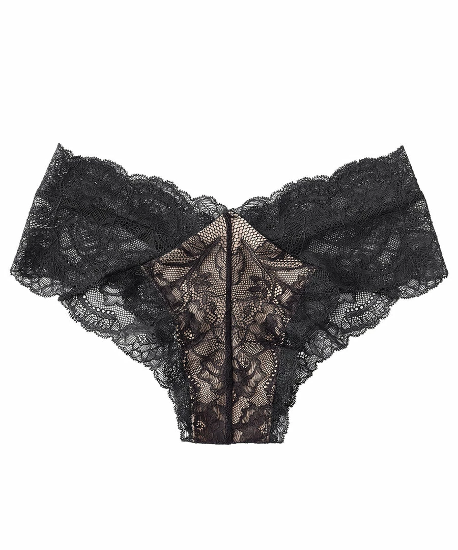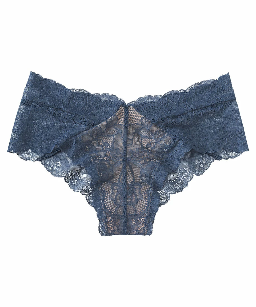Back style with very sexy see-through lace. “Cheeky Cut” has less coverage on the back than a plain panty, but doesn’t cut into the skin like a thong.
