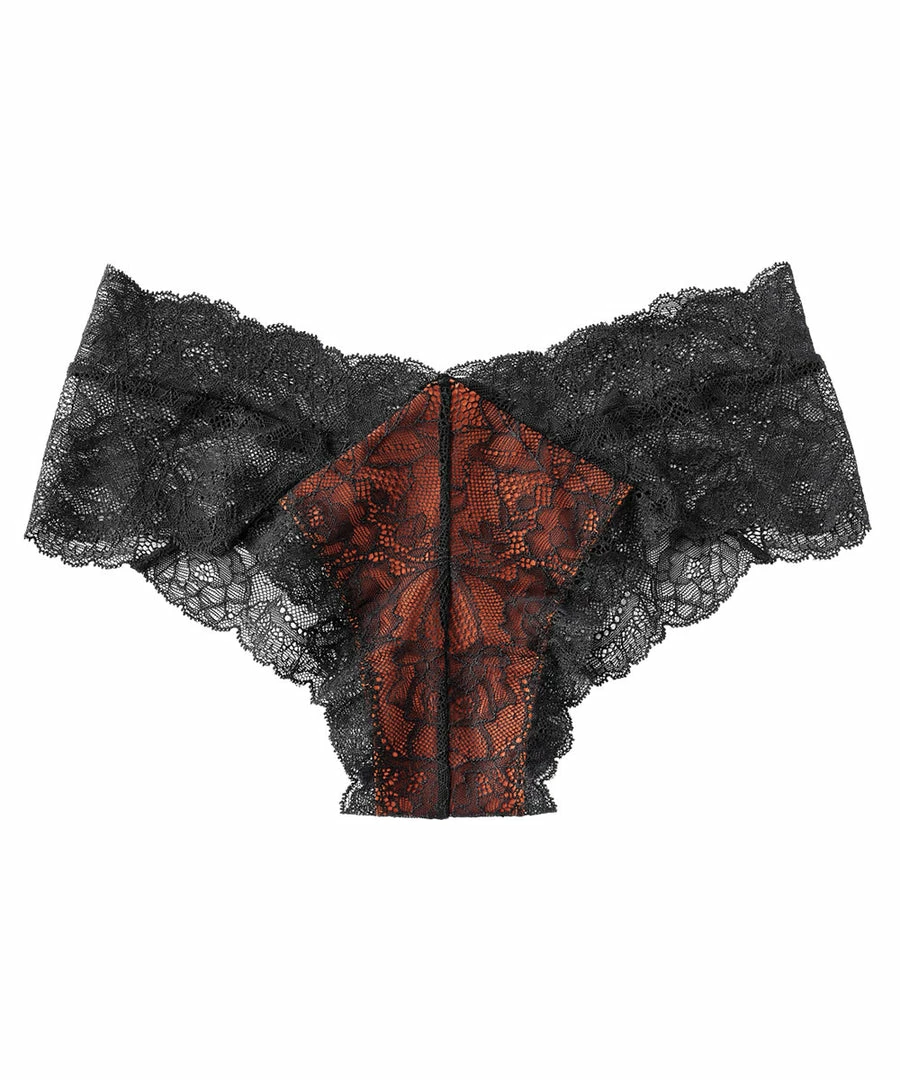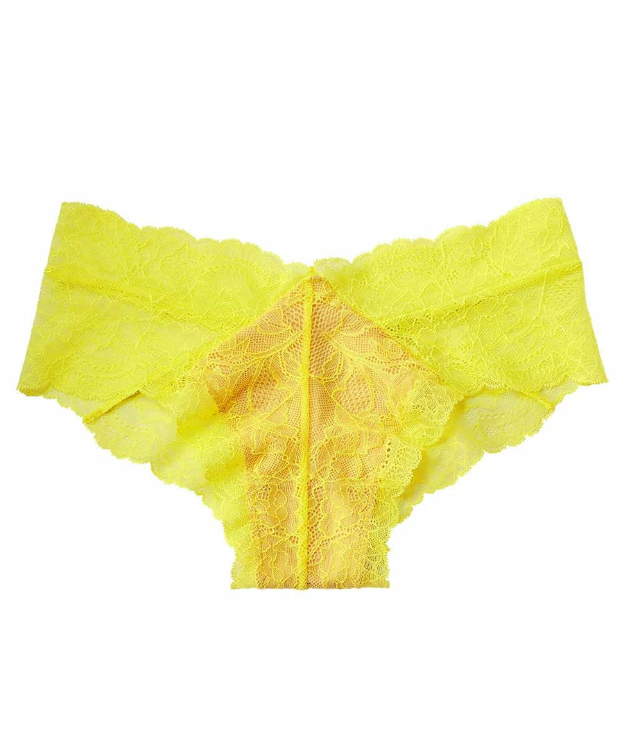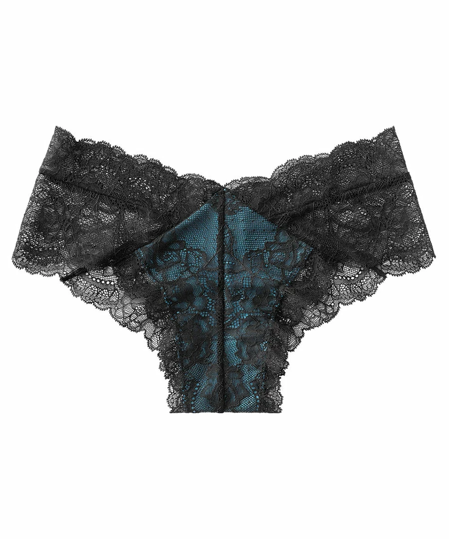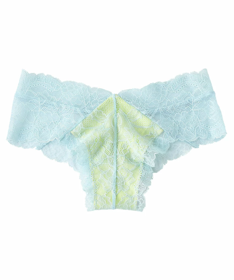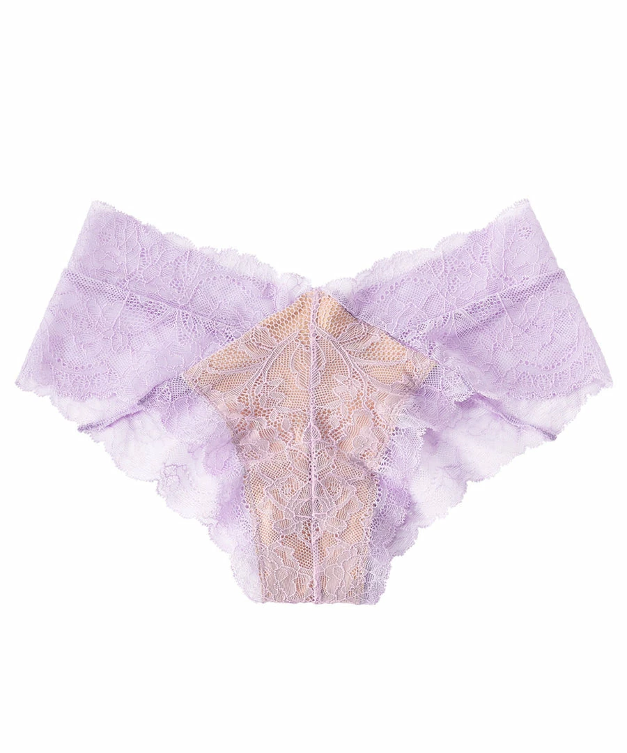 Back style with very sexy see-through lace. “Cheeky Cut” has less coverage on the back than a plain panty, but doesn’t cut into the skin like a thong.