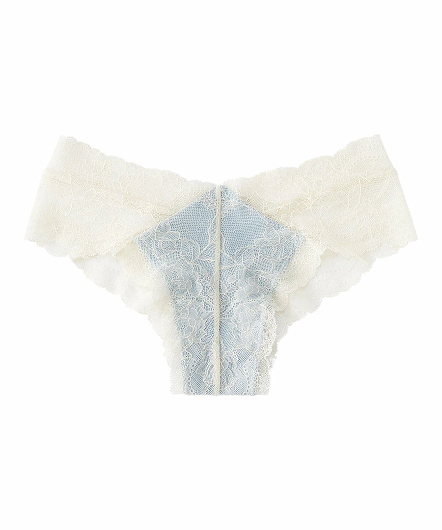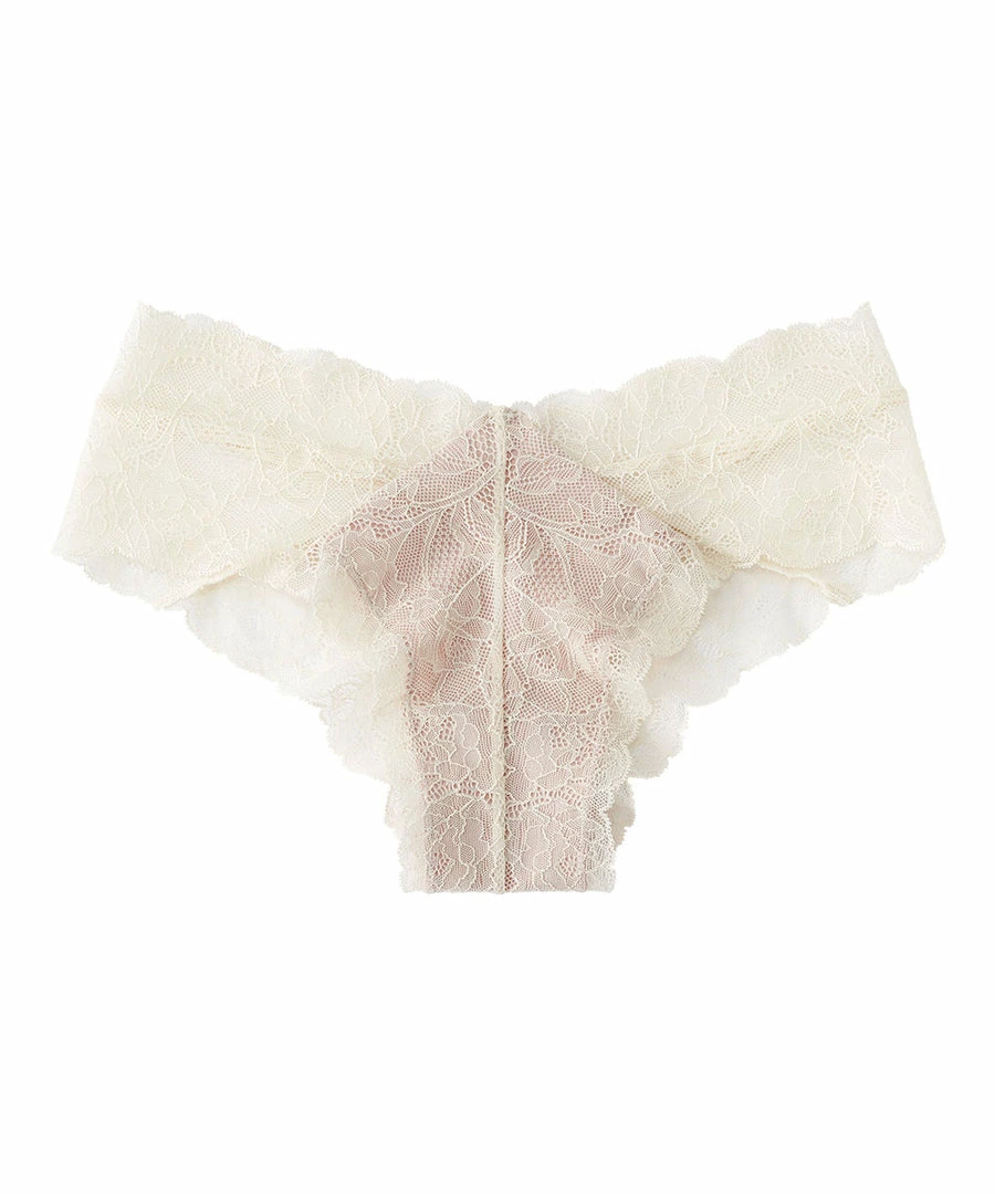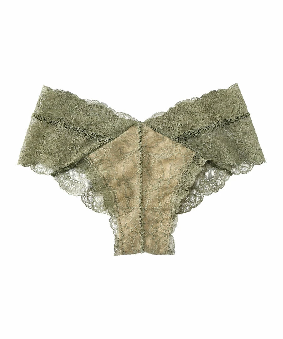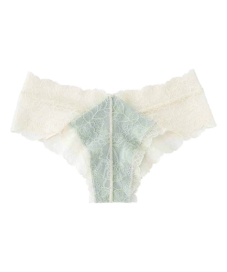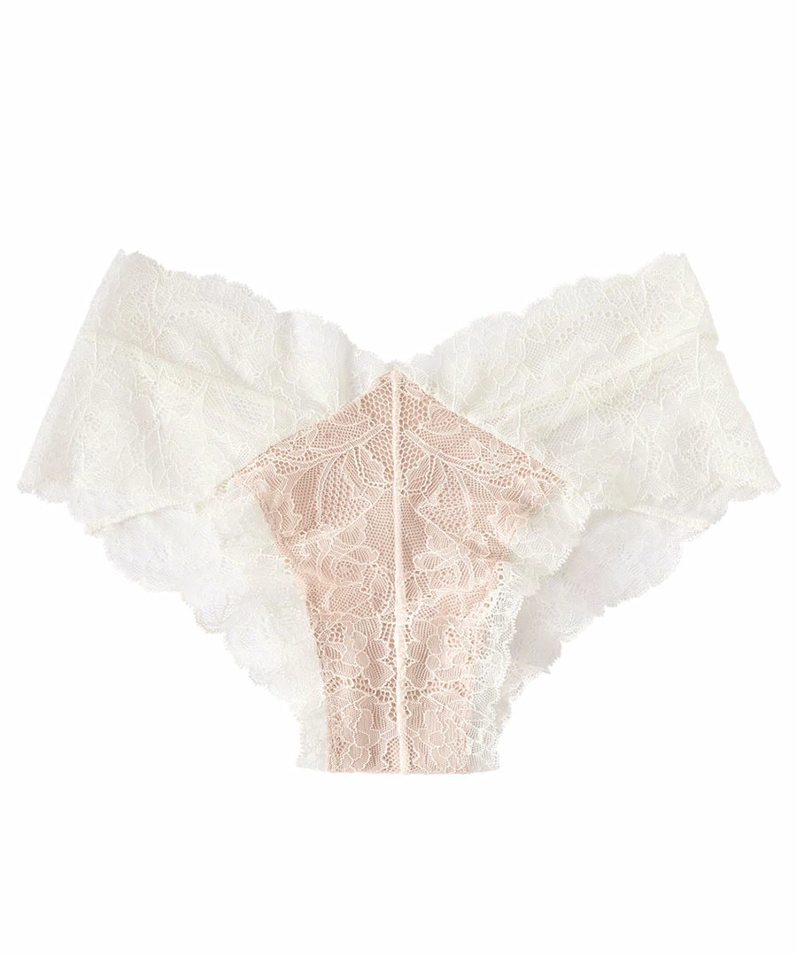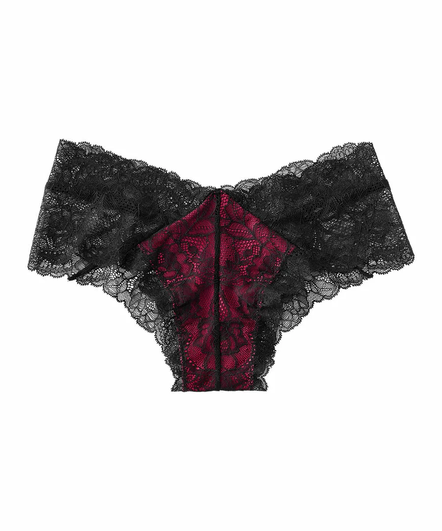 Back style with very sexy see-through lace. “Cheeky Cut” has less coverage on the back than a plain panty, but doesn’t cut into the skin like a thong.