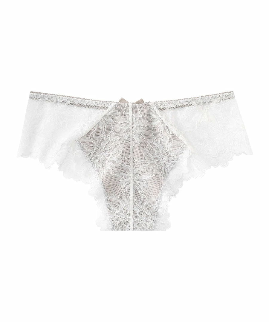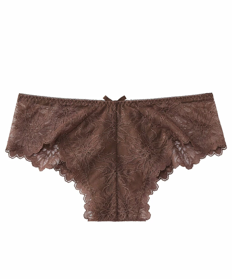 “Cheeky Cut” has less coverage on the back than a plain panty, but doesn’t cut into the skin like a thong.