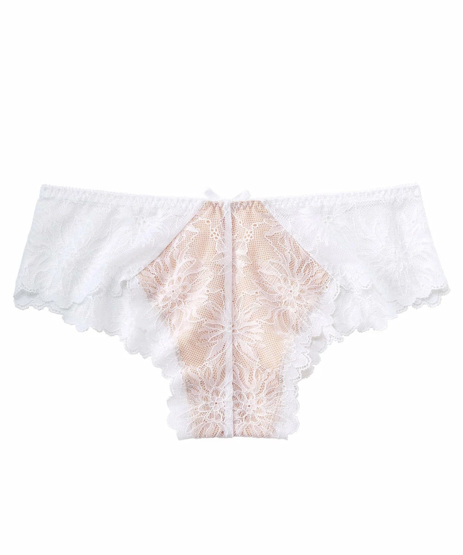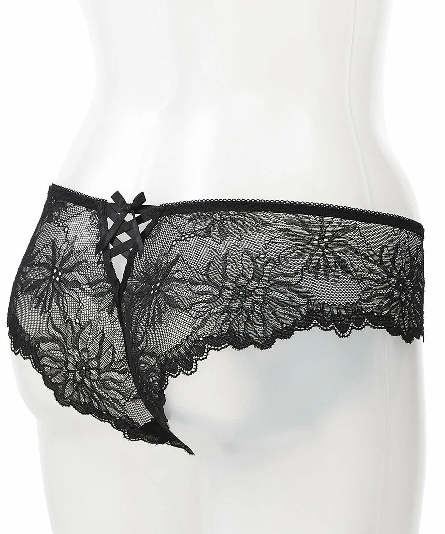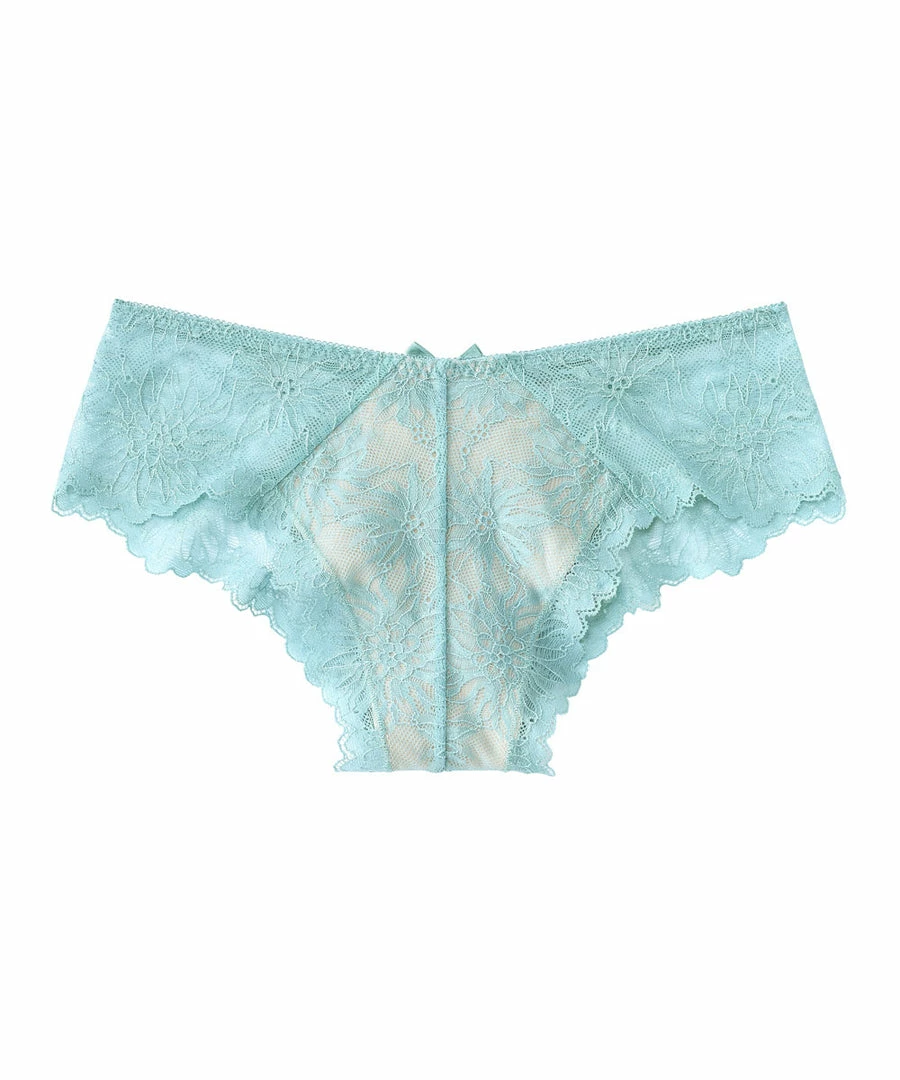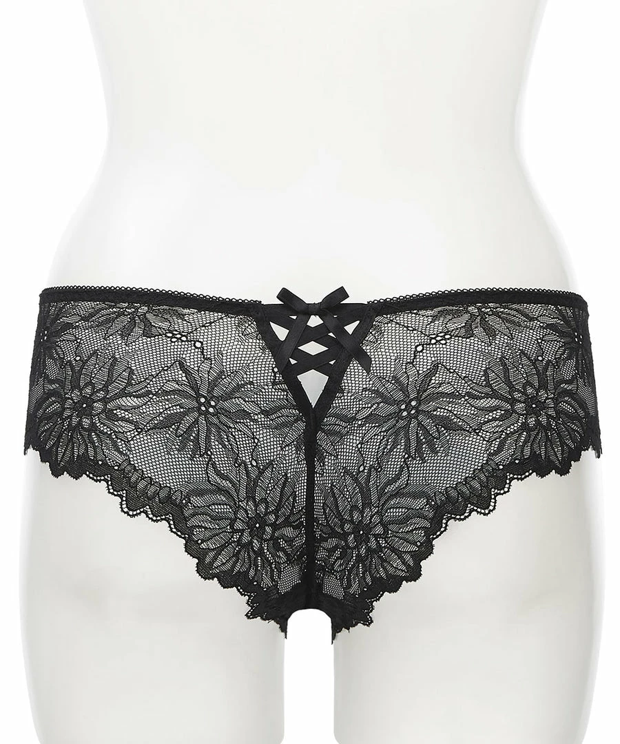 Sexy cheeky panty finished with transparent flower print lace from the sides to the back.