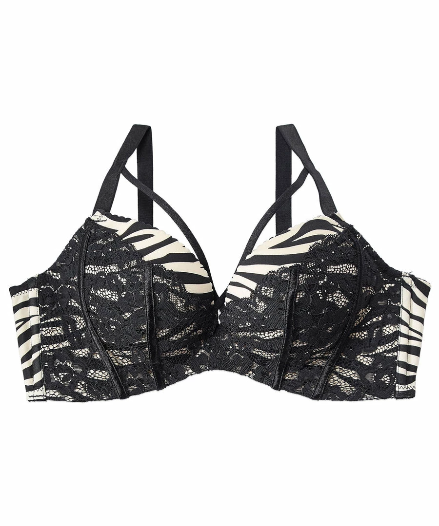 The four lines on the front lace are designed to resemble a bustier, and the tape crossing over the top of the cups makes your cleavage look even more sexy.