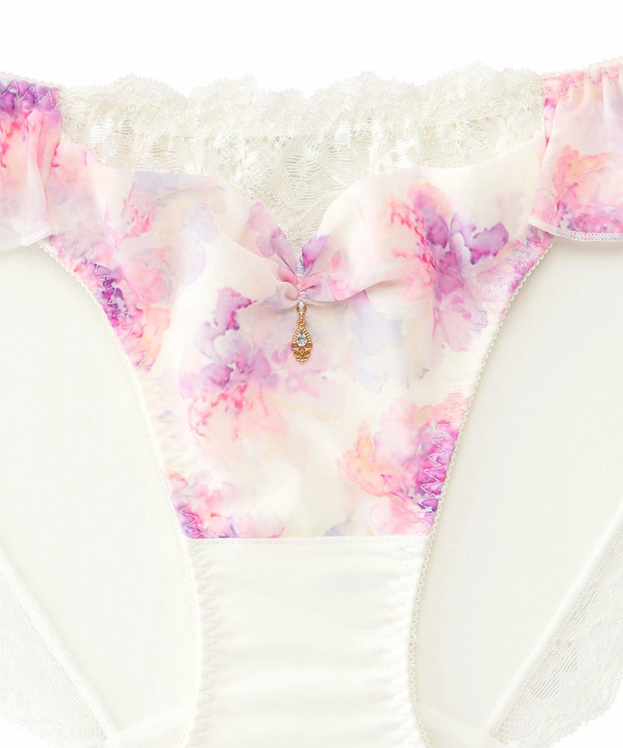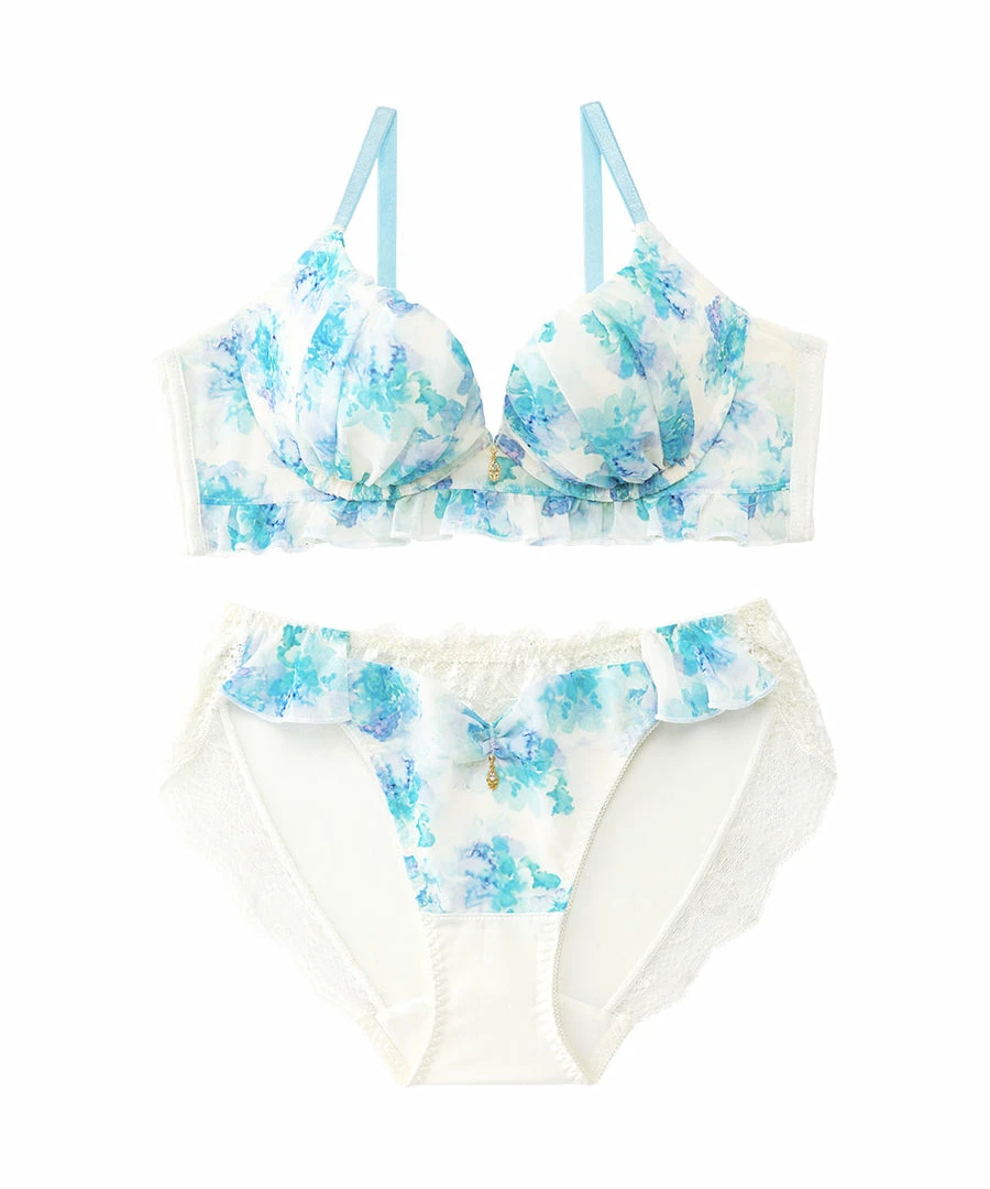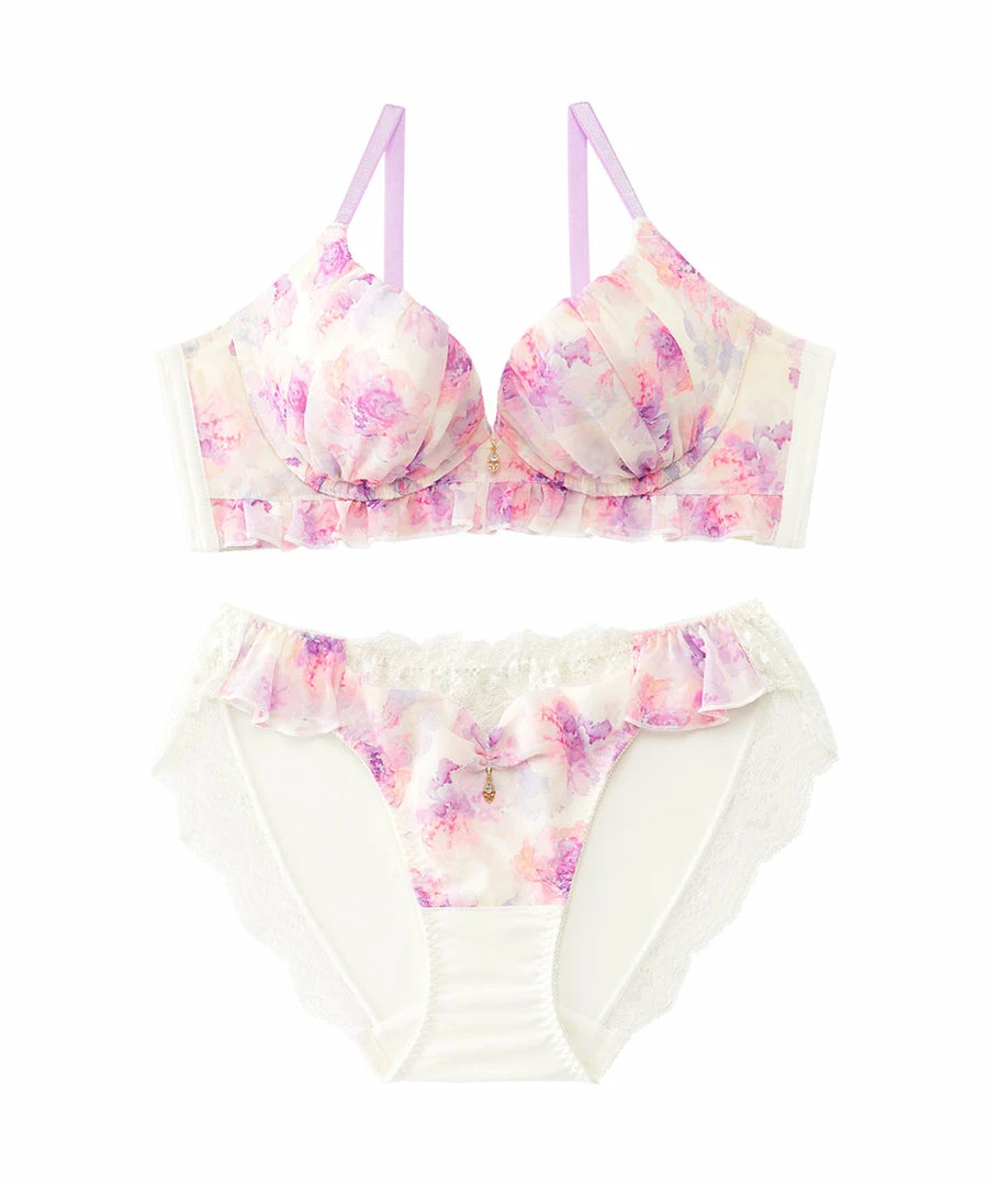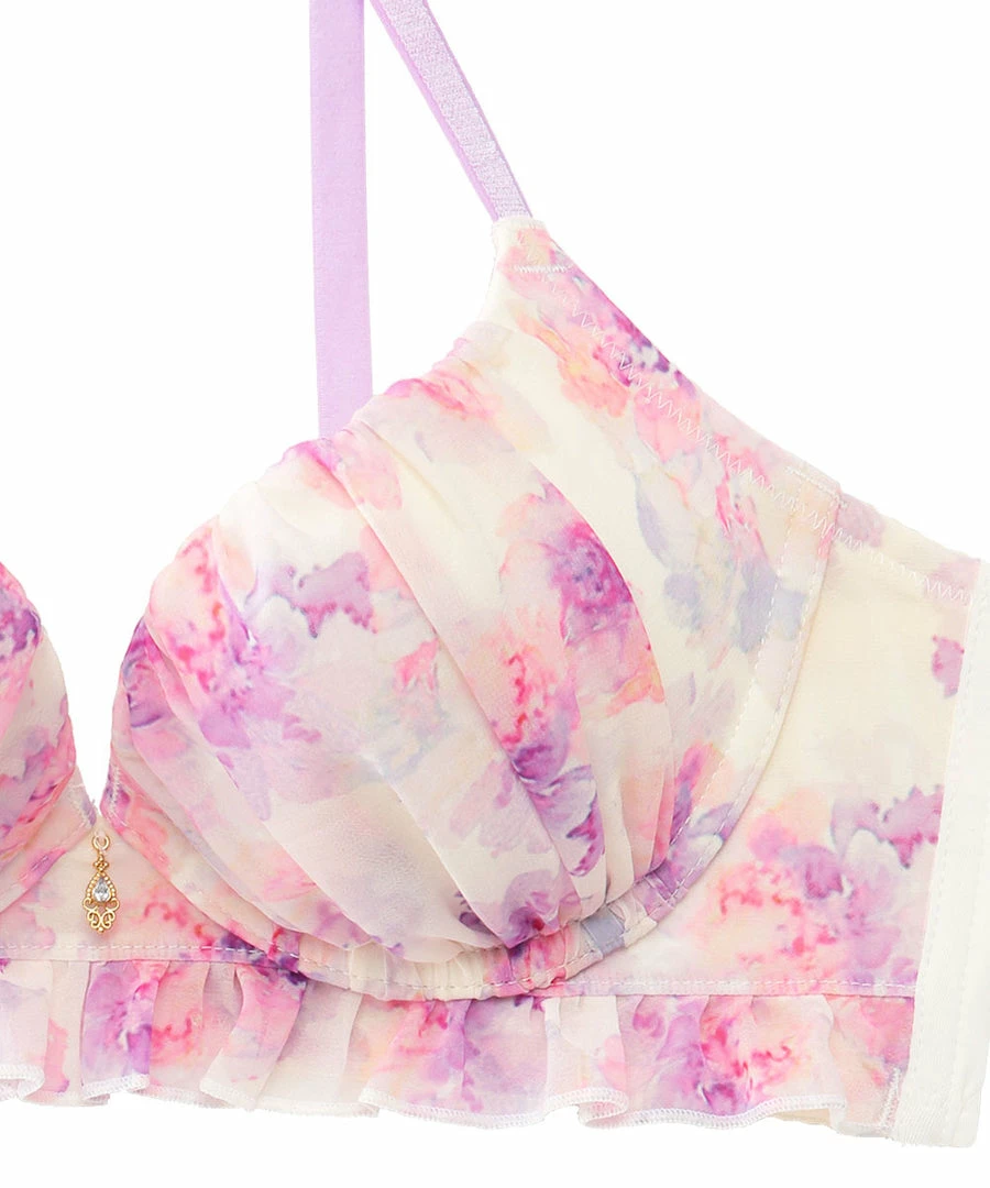 An adult cute bra set with a simple floral print that resembles slightly blurred watercolors.