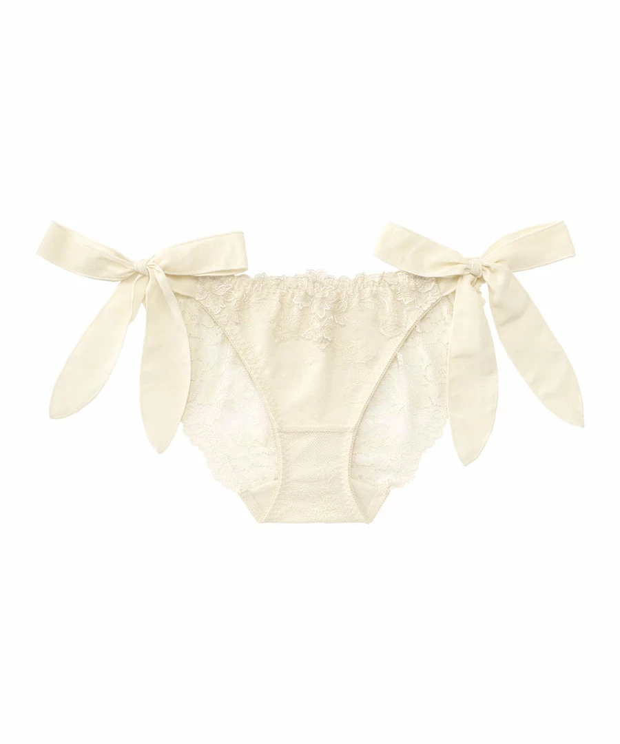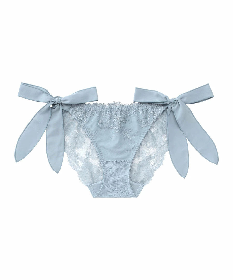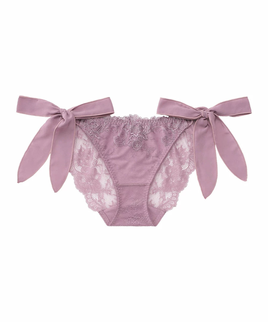 Cute chiffon tie-up bow ribbon bikini panty. The flattering side-tie design means you can adjust the fit to your liking. Transparent flower print lace fabric on the back offers a sexy contrast to the front.