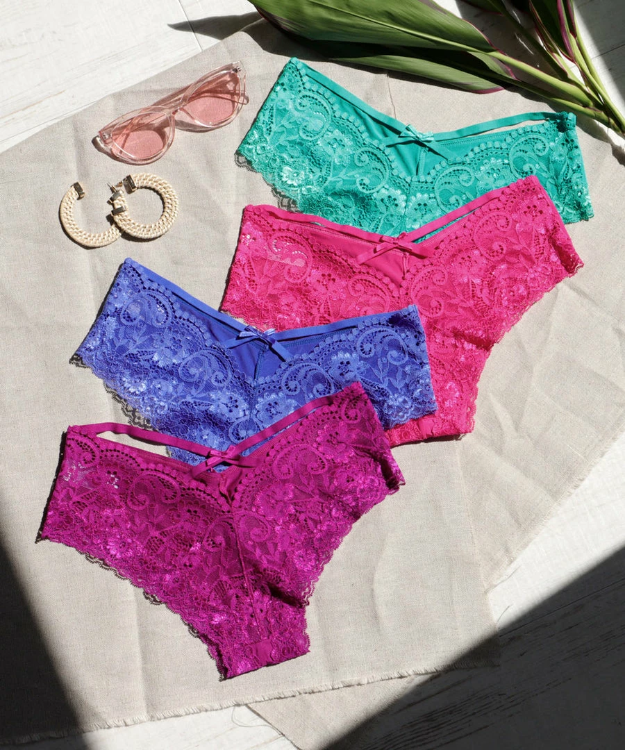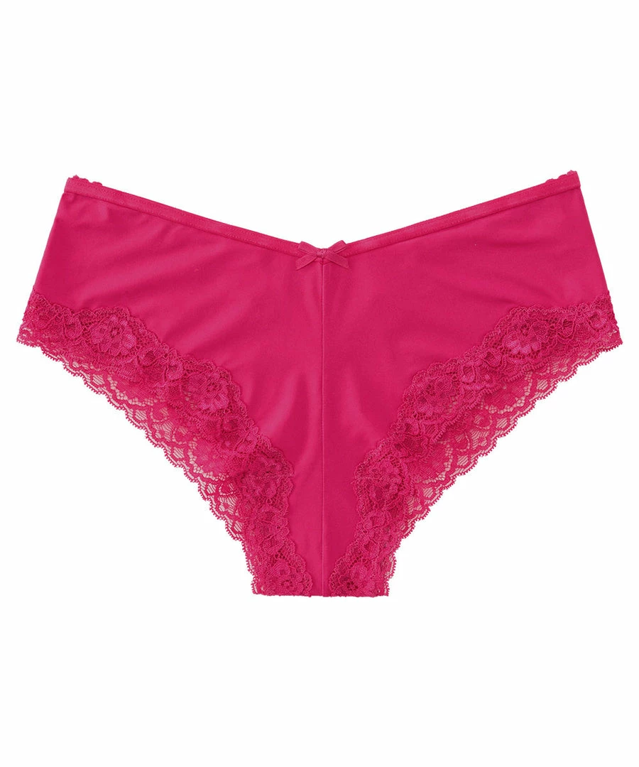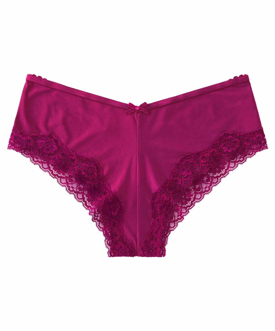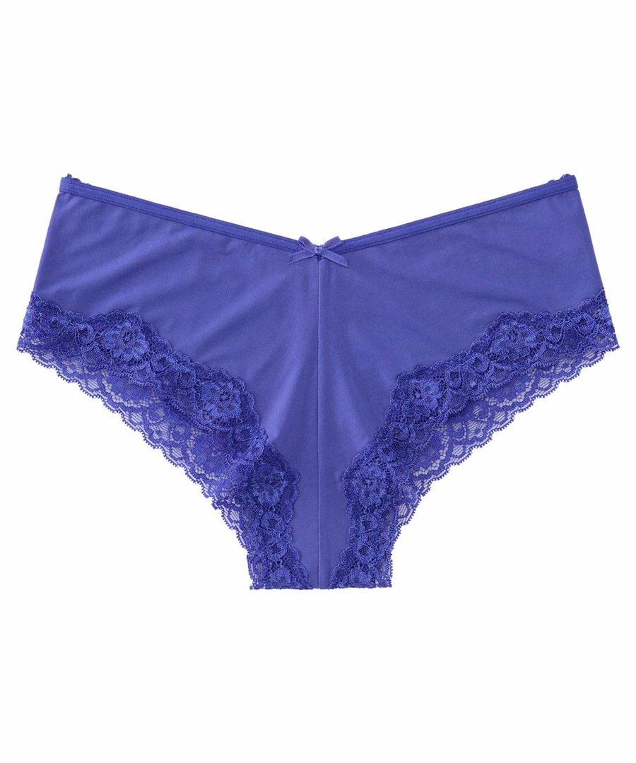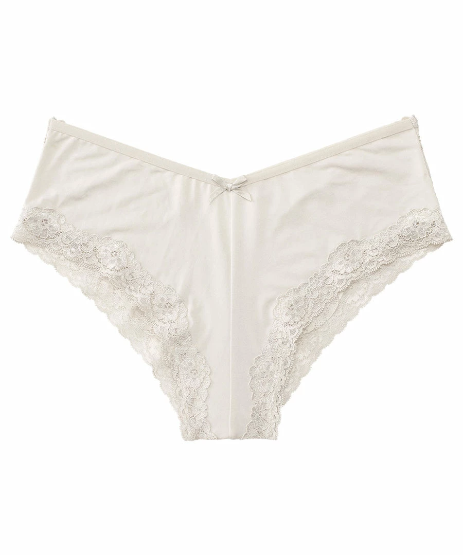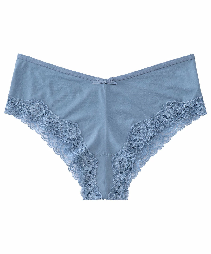 “Cheeky Cut” has less coverage on the back than a plain panty, but doesn’t cut into the skin like a thong.