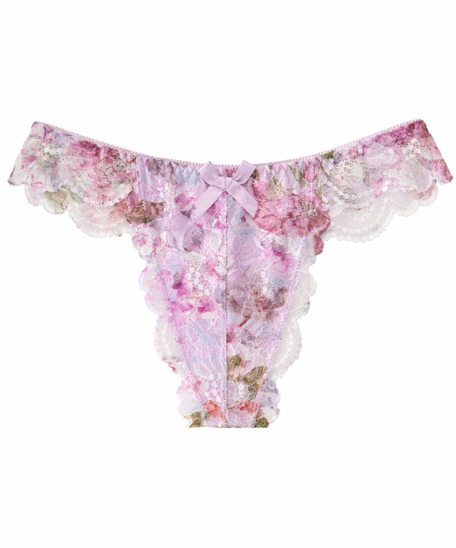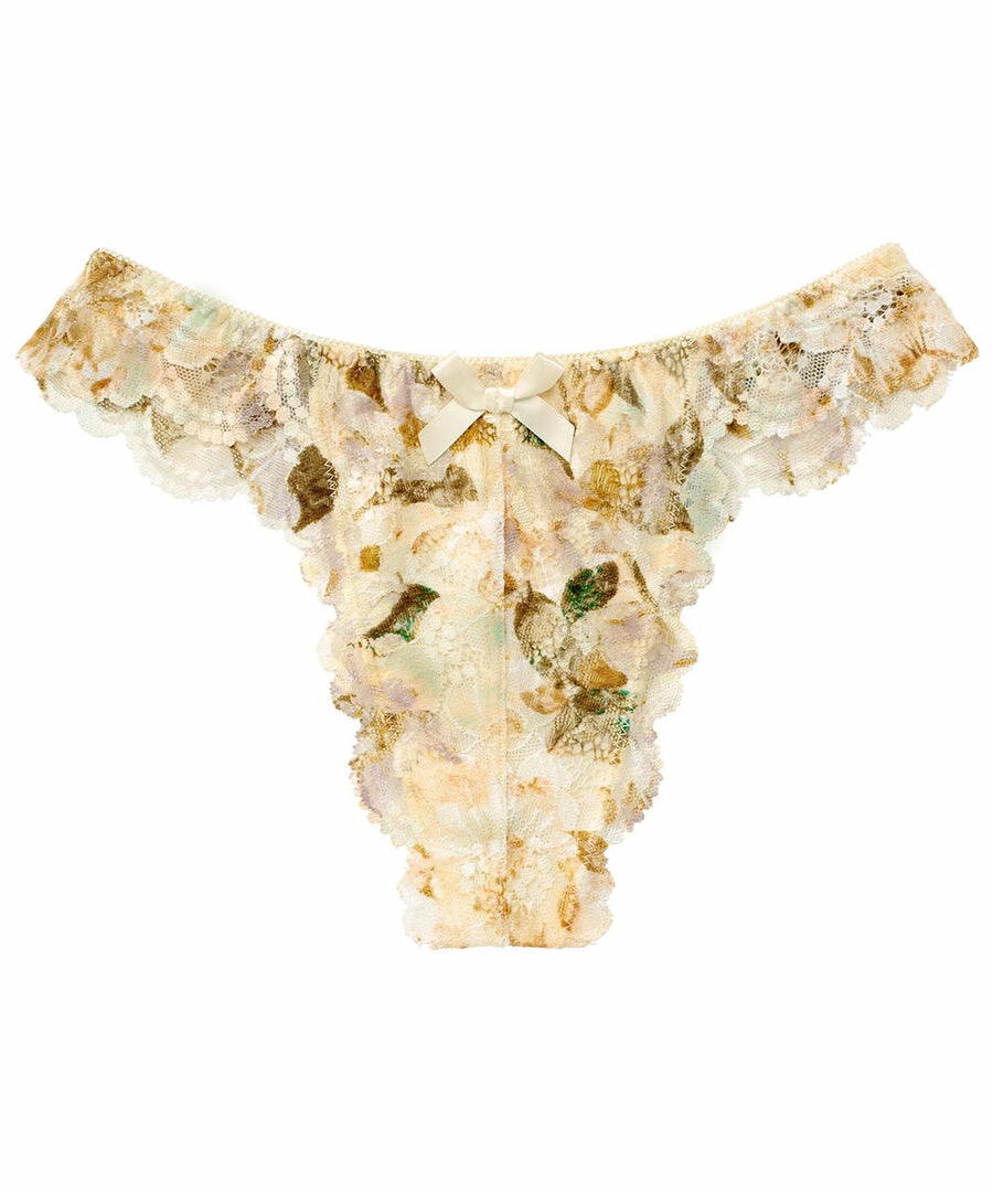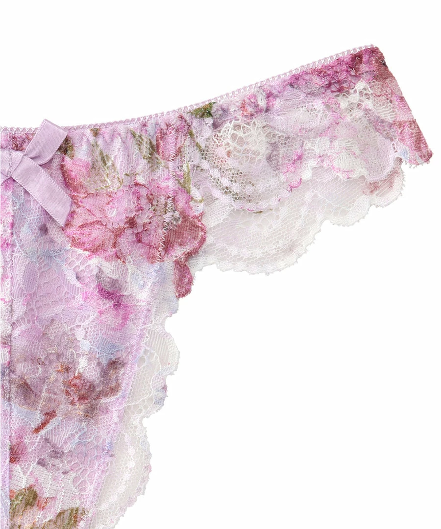 Elegant floral lace thong panty with colorful flowers that bring to mind a spring garden. A design that conveys a sense of sweetness amidst the elegance.