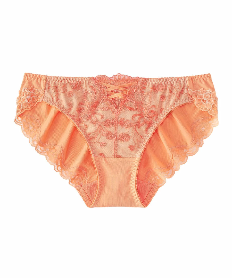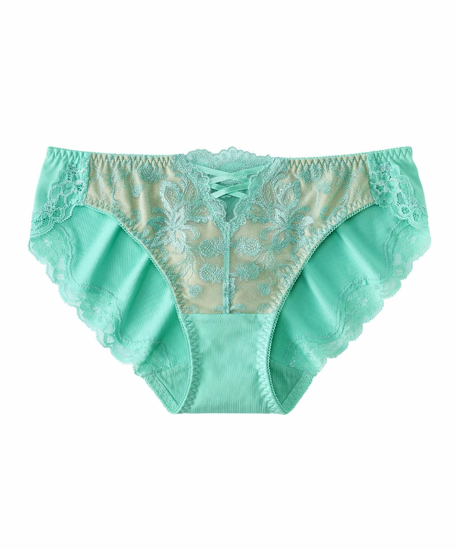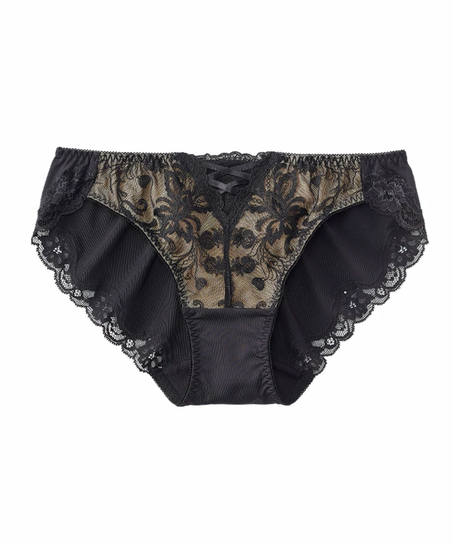 Sexy bikini panty with cross ribbons added to the elegant lace.
