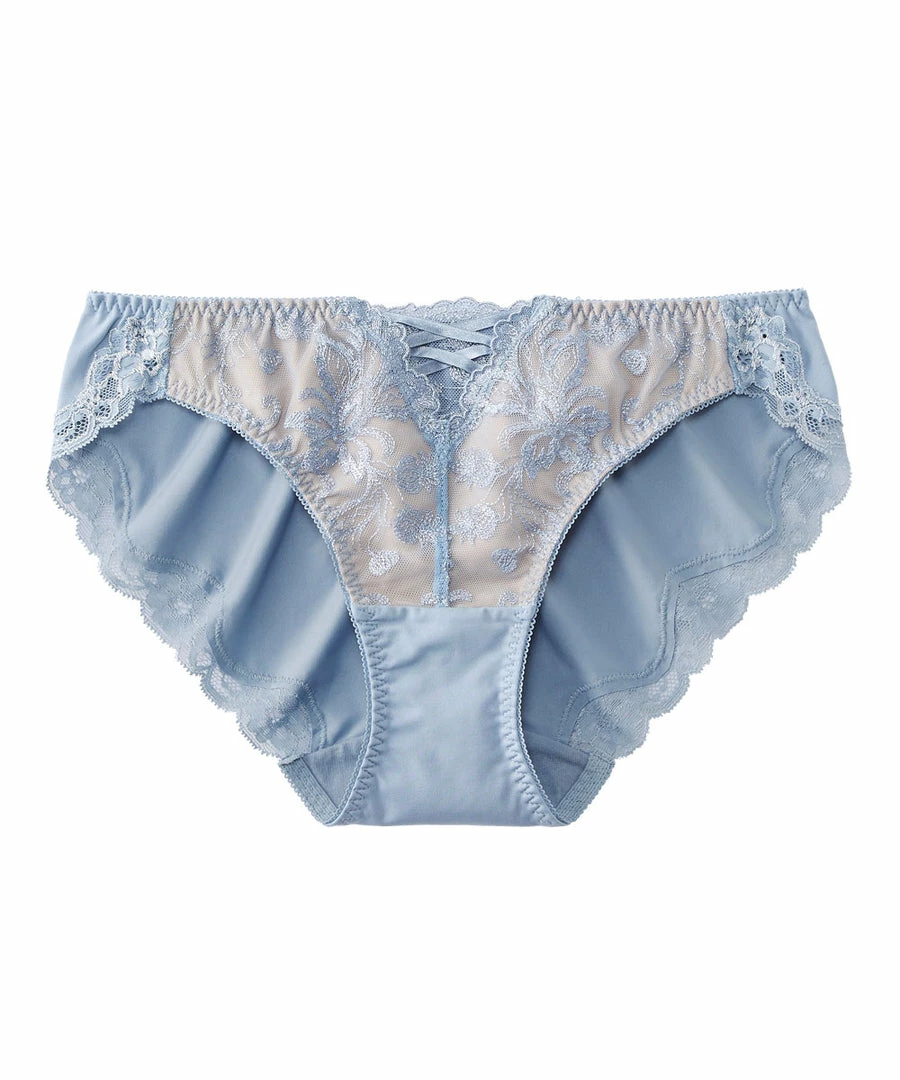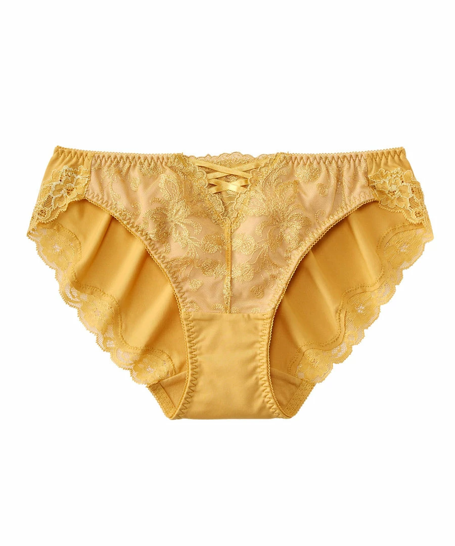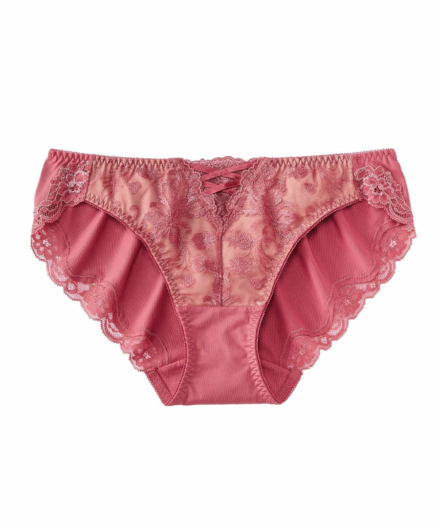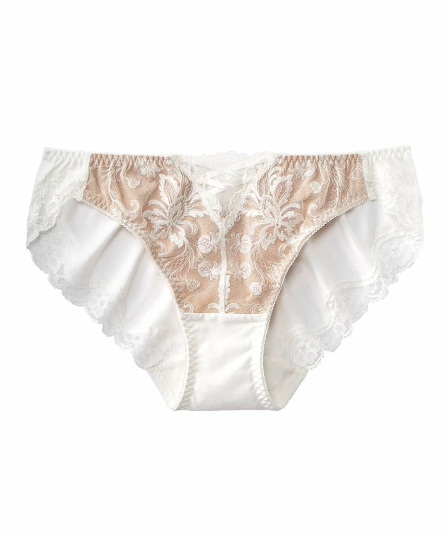 Sexy bikini panty with cross ribbons added to the elegant lace.