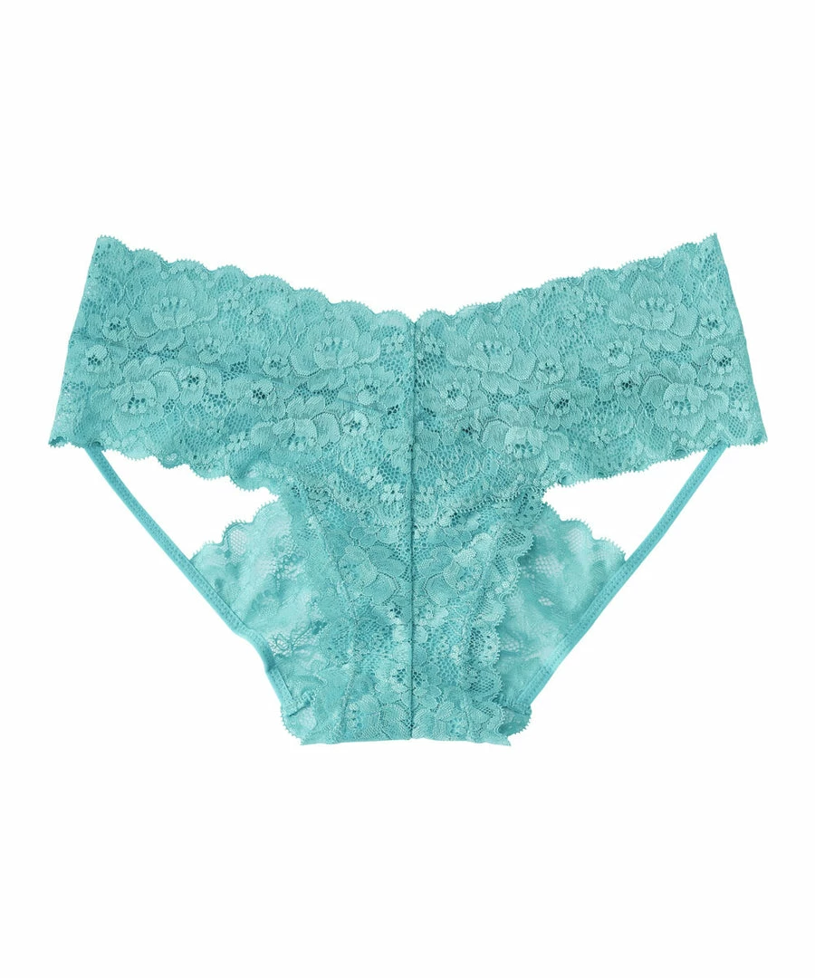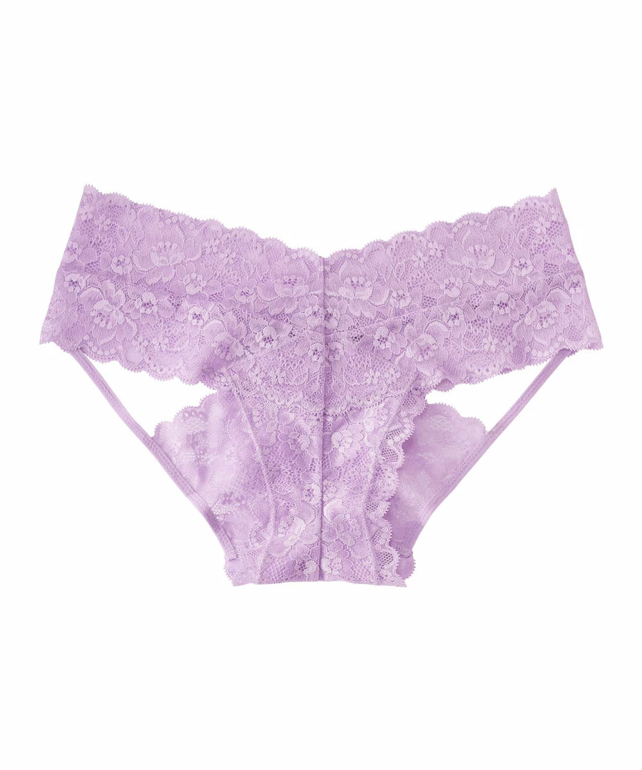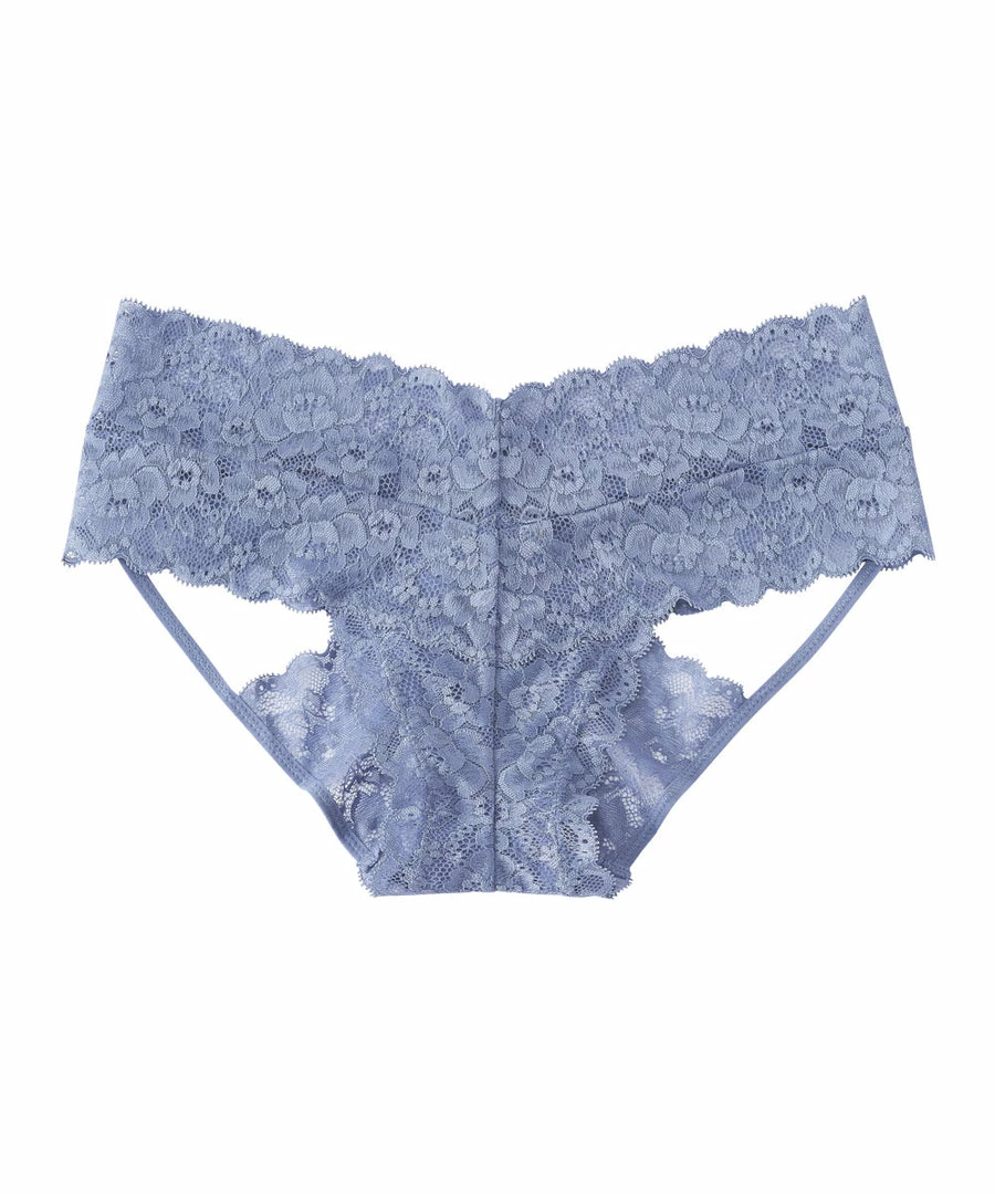 A sexy Bikini Panty made with highly elastic flower lace and a hit of transparency. From the front, it has the silhouette of the Cheeky Panty. The back is based on the form of the Bikini Panty accented by a small ribbon, and reveals bare skin in places.