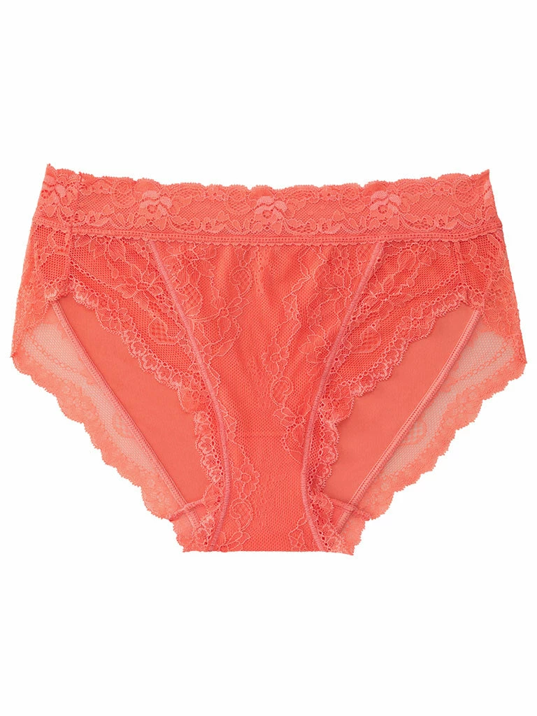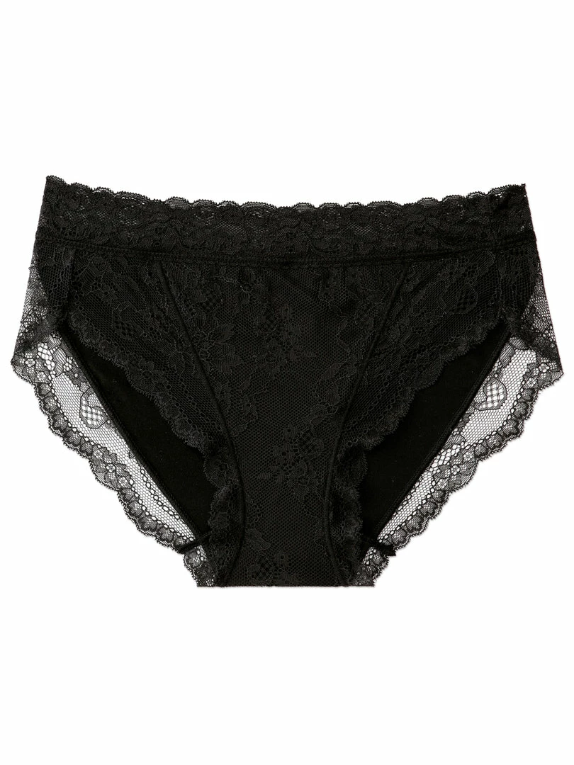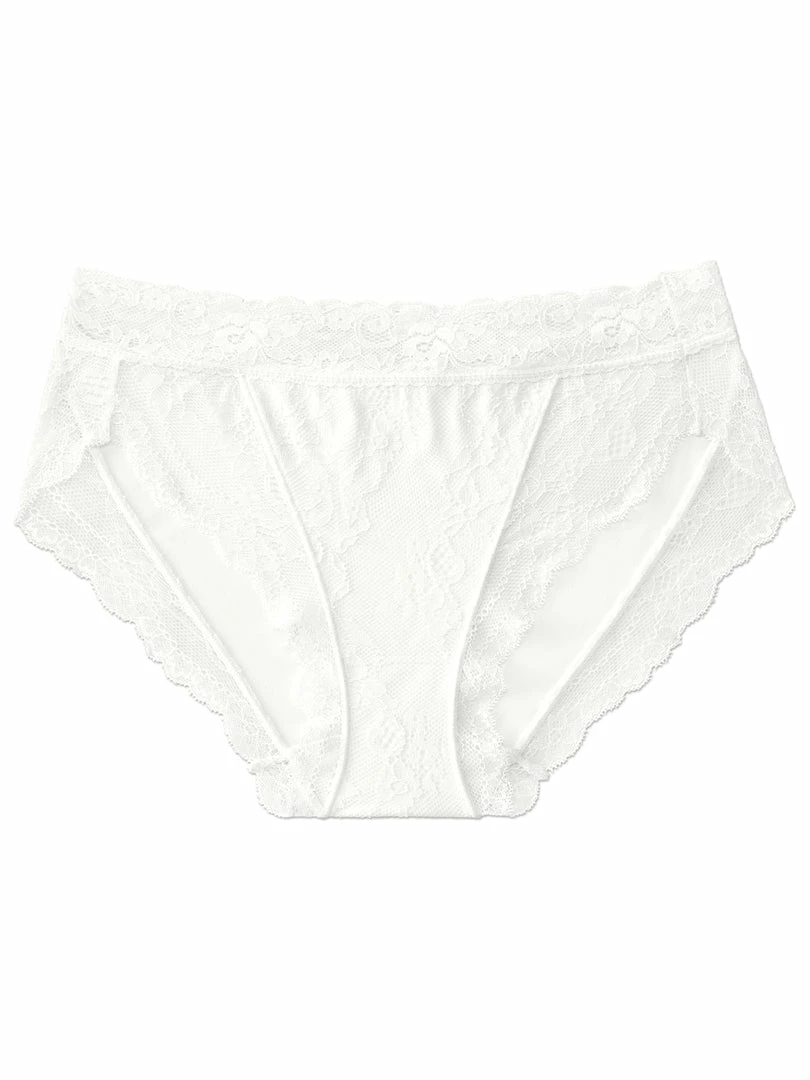 Elegant flower lace bikini panty. Lace on waistband and leg openings means panty lines won’t show through even tight pants and skirts.