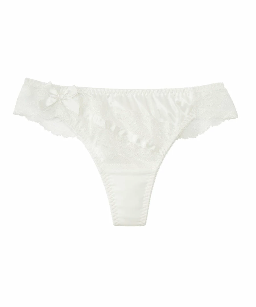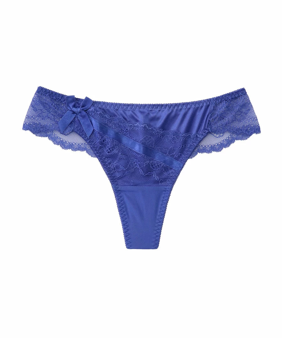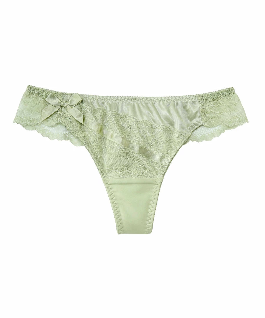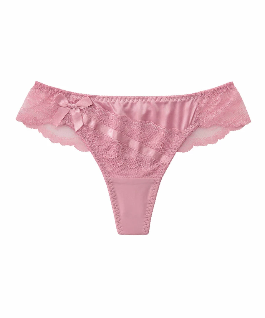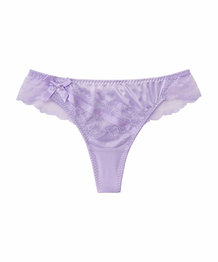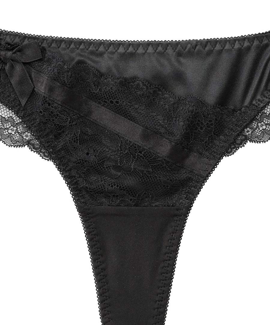 The stylish design features a combination of lace and satin.