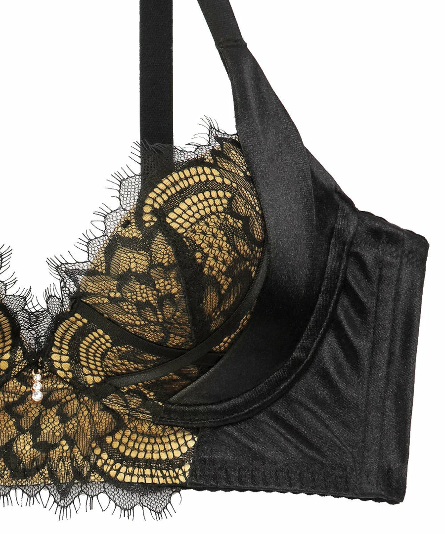 The very popular design-centered Sexy Geisha Side Support Series of compensating bras now has a sexy, cool brassiere of glossy satin overlaid with black lace!