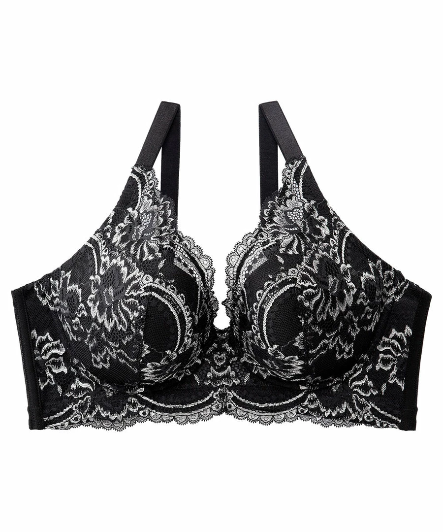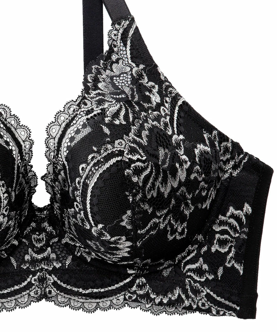 The cups are a natural rounded mold shape, and the elegant lace design with a prominent flower print makes this an adult cute bra.