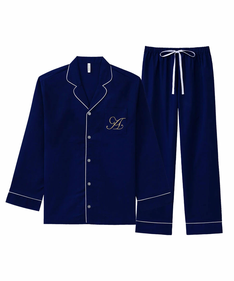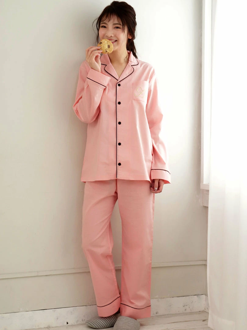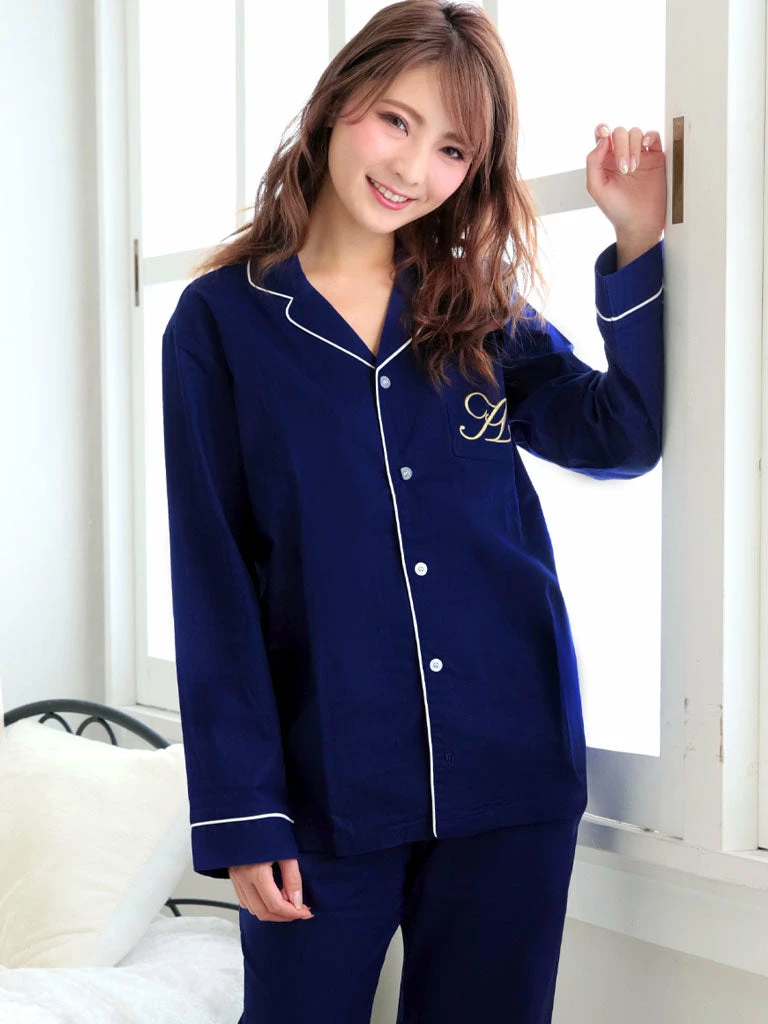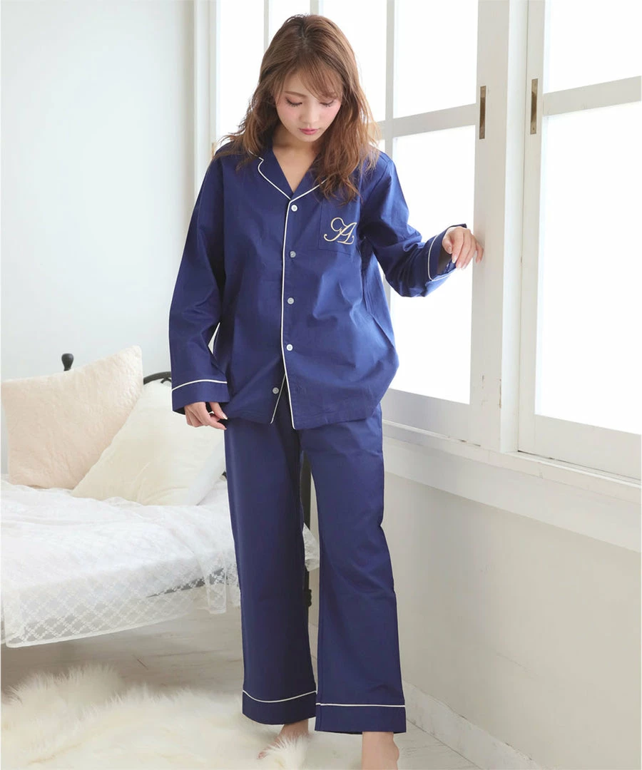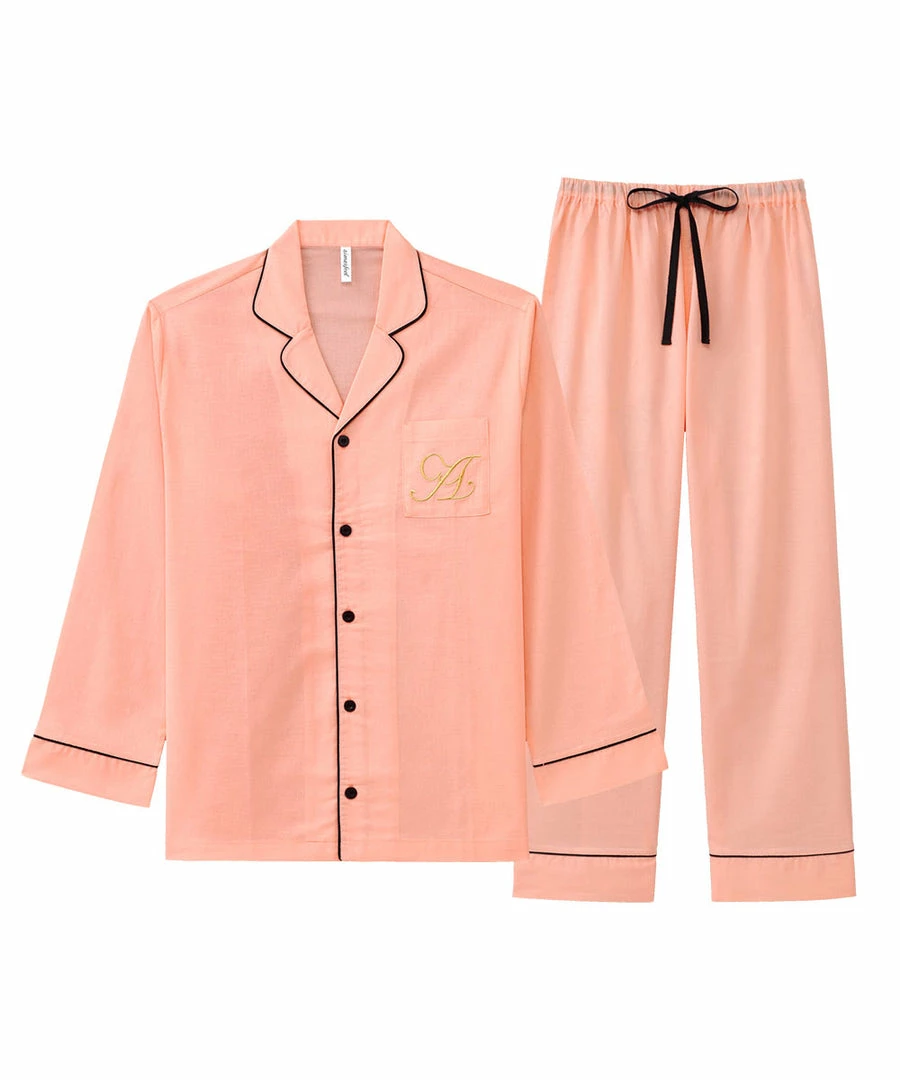 Pajama top and bottom set is soft and gentle on the skin! Because it is 100% cotton, it promises a quality, comfortable sleep. Gold embroidery are stylish! These cute pajamas also make a present that’s sure to please.