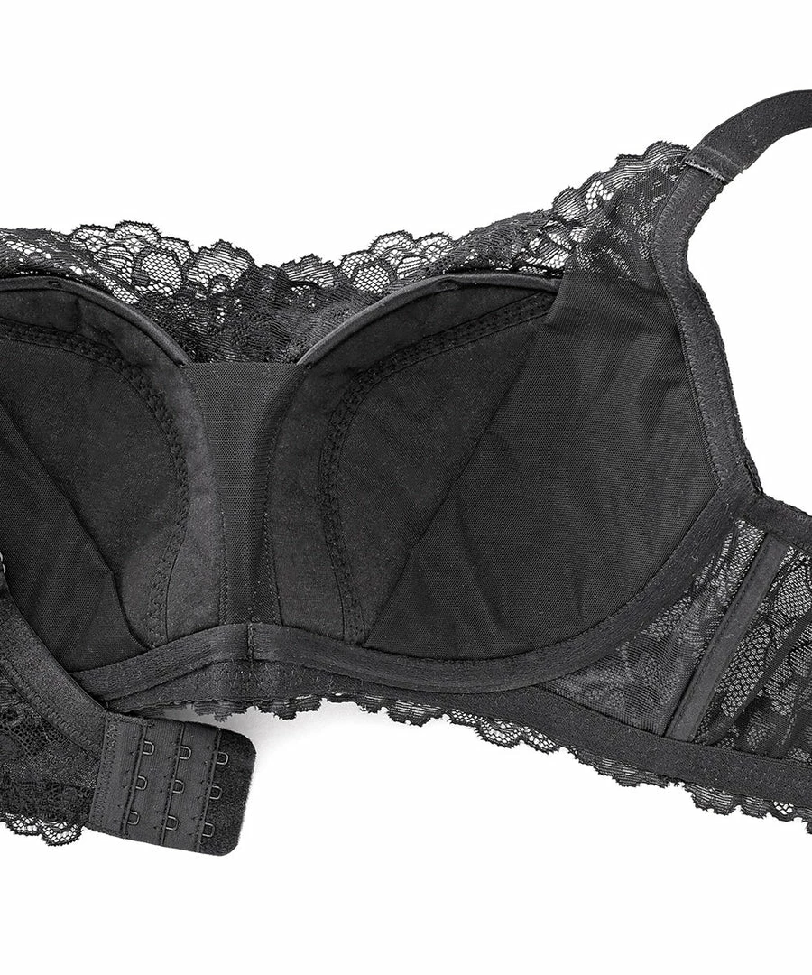 The lace on the chest lifts any overlap of the upper area, securely enveloping the entire bust.