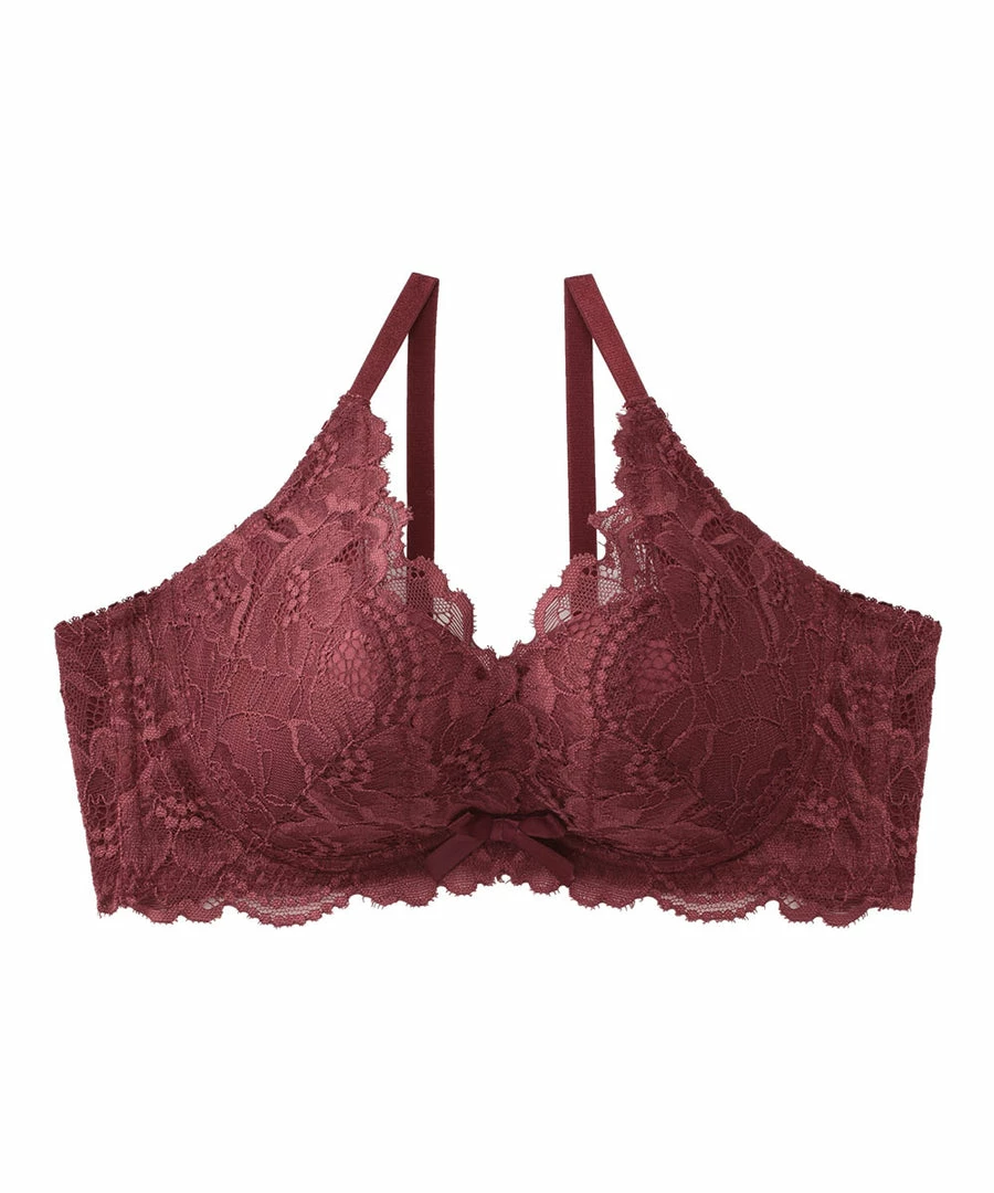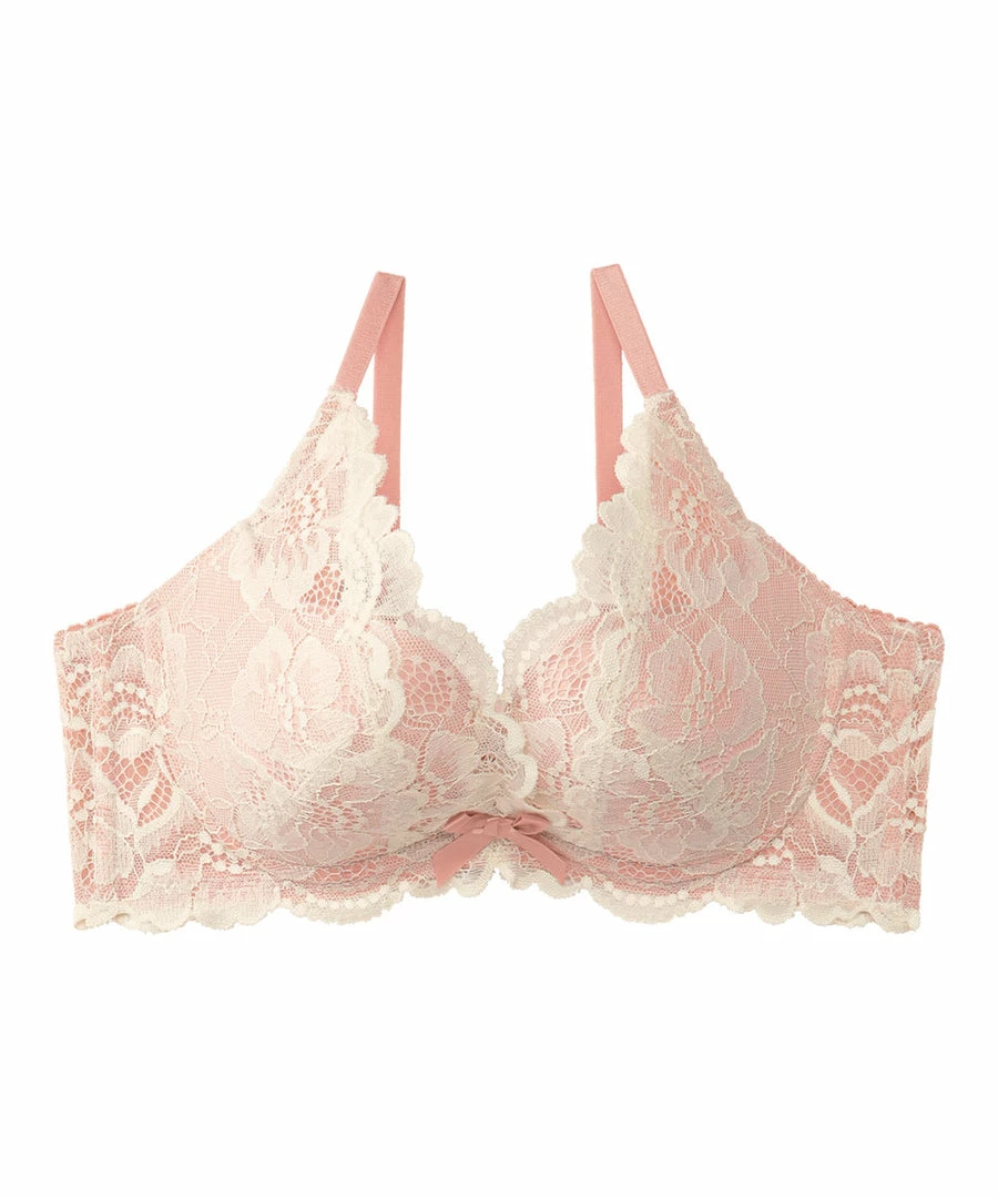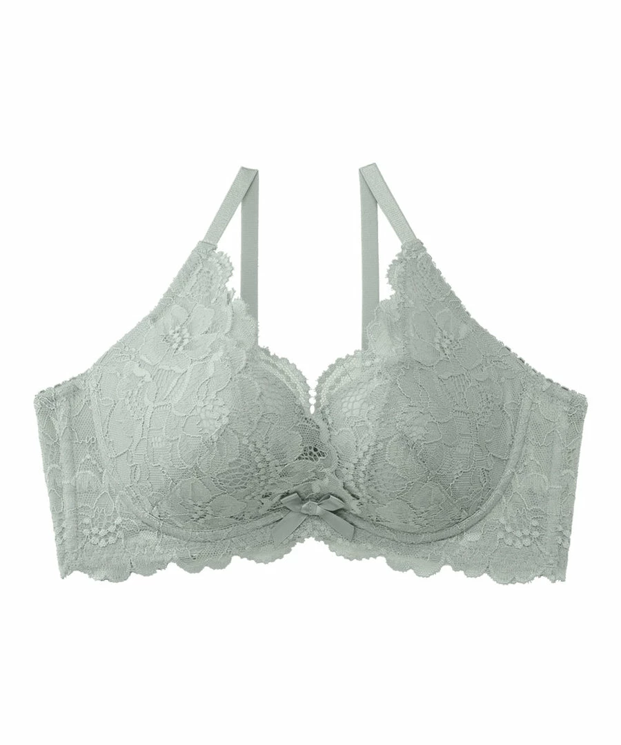 A Slimming Push-Up Bra in Lace. Shaping bra with no discomfort! Compared to traditional bras, this piece shapes and enhances the bust from the sides and back. It has layered lace from the cups to the straps, keeping the cleavage in check. The L-shaped underwire is designed for comfort! The stylish round silhouette ensures that the bust won’t look sharp.