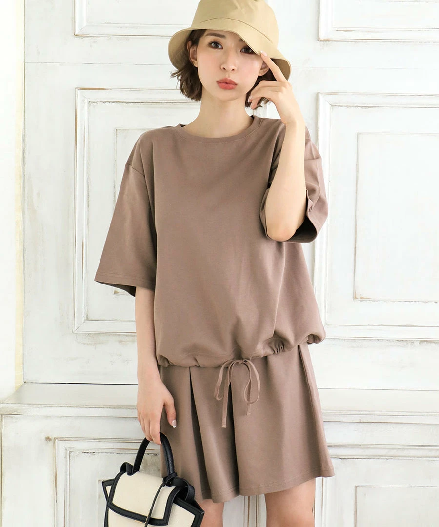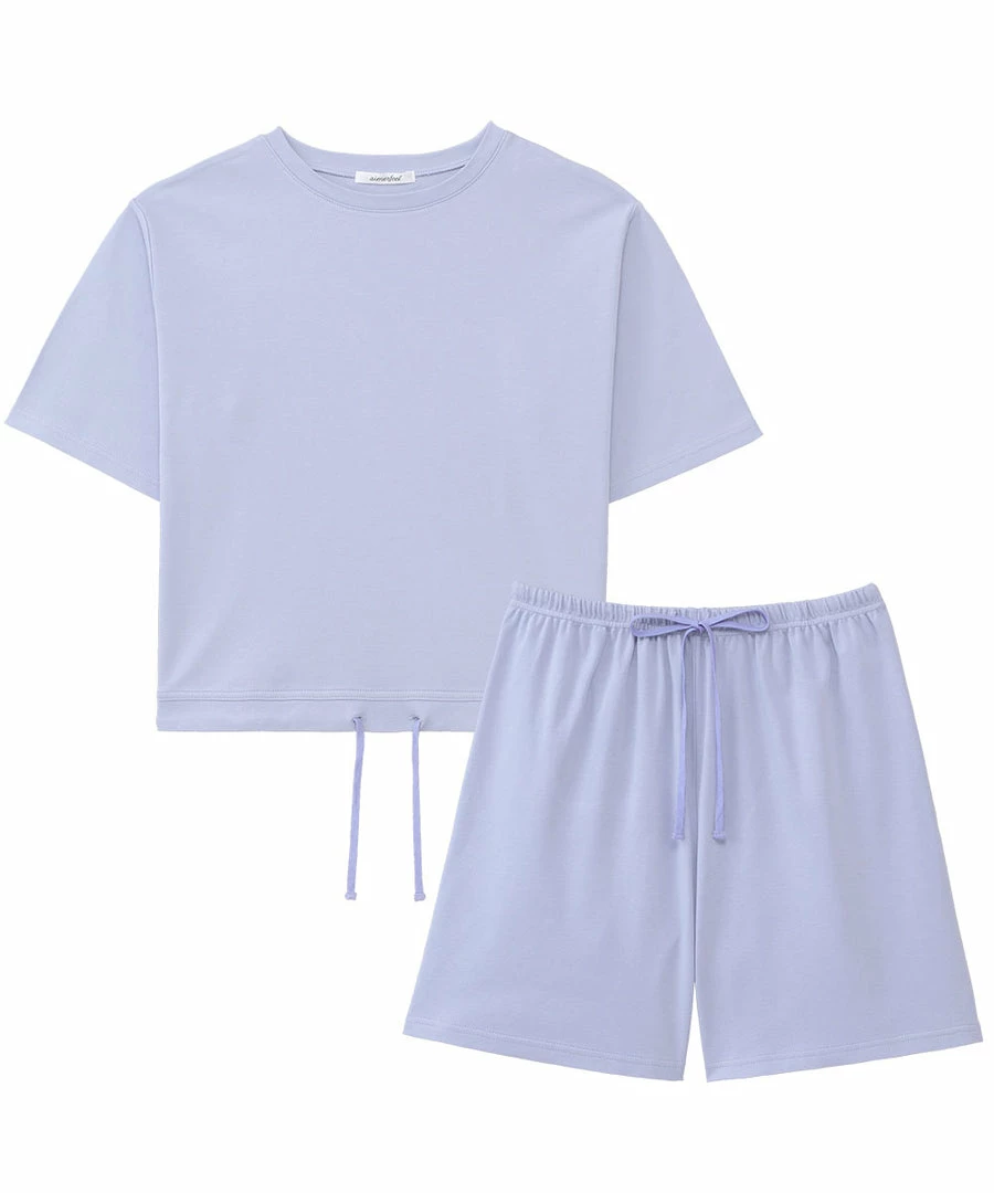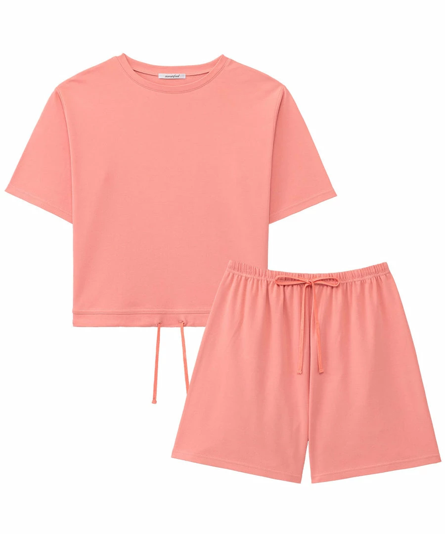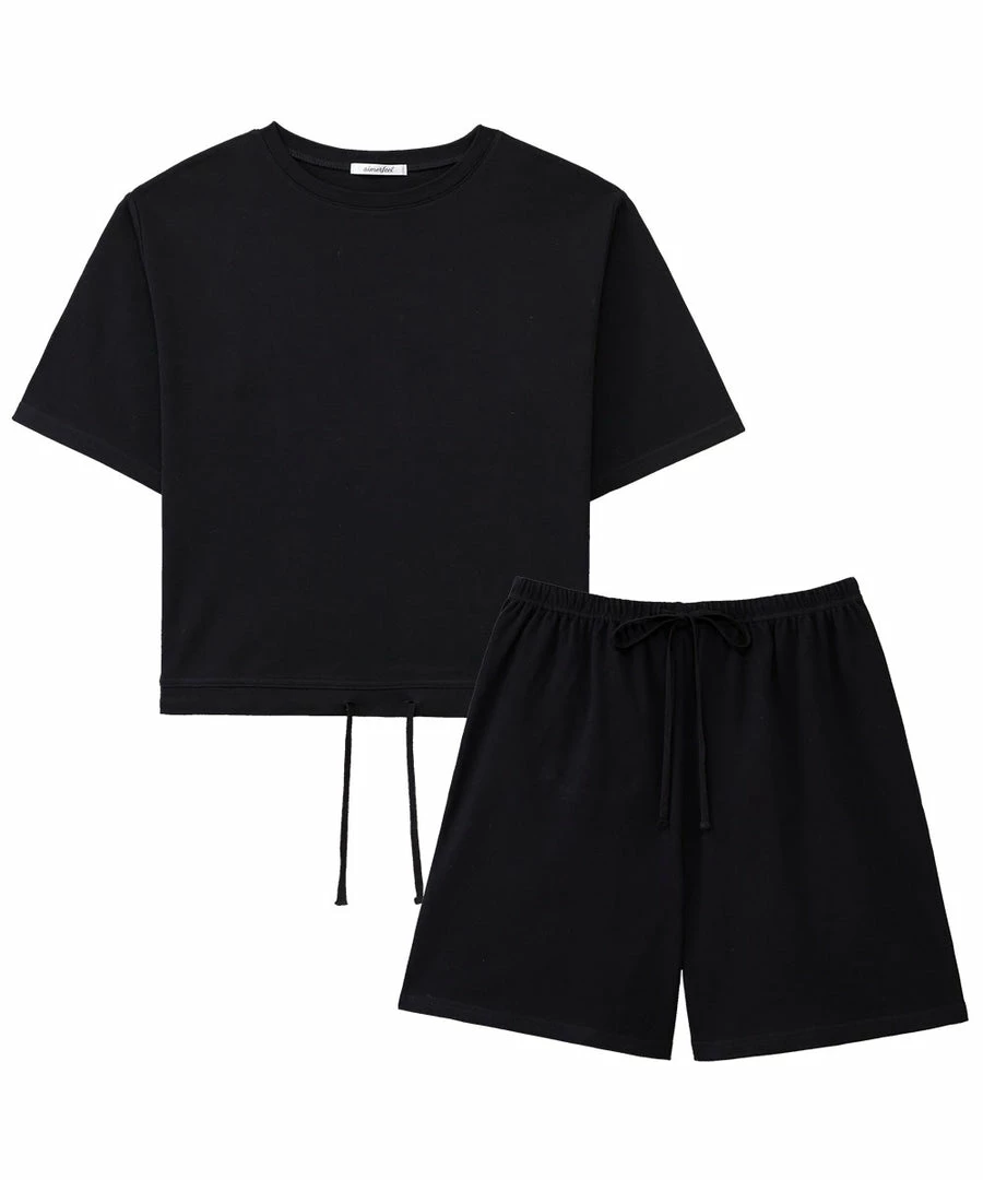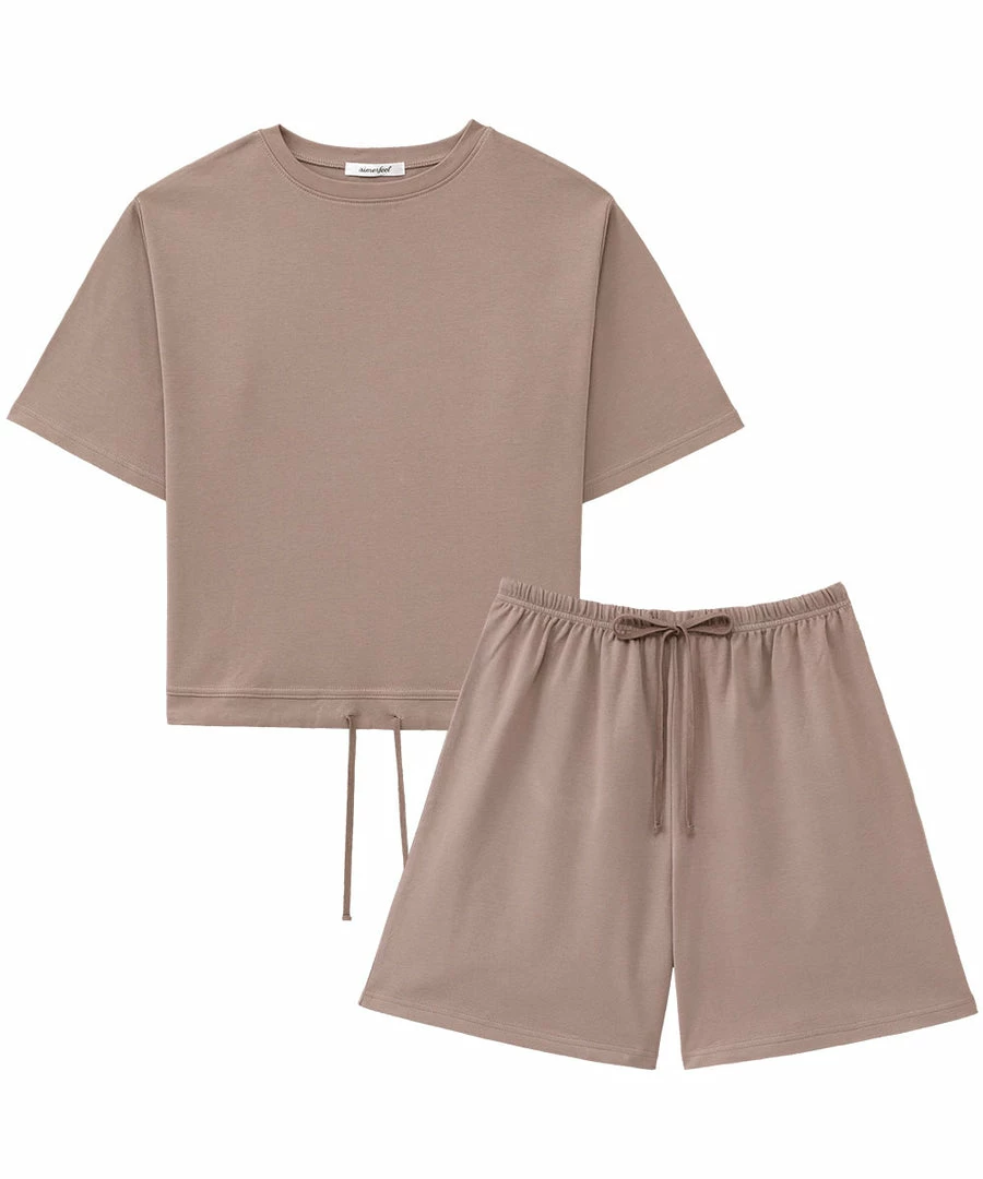 Casual loungewear, with the top having a trendy drawstring design on the hem.