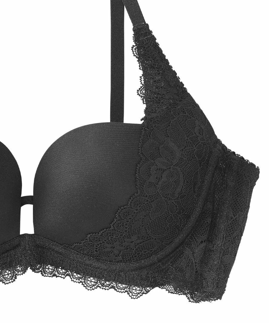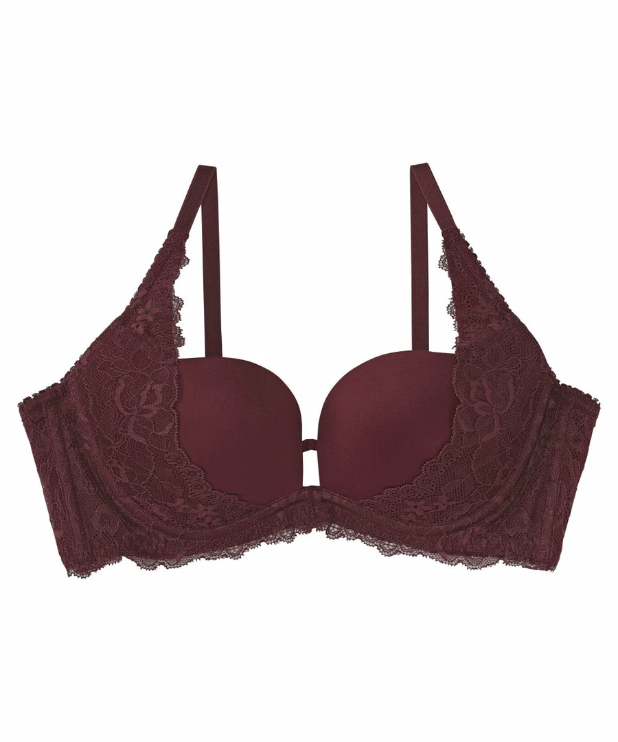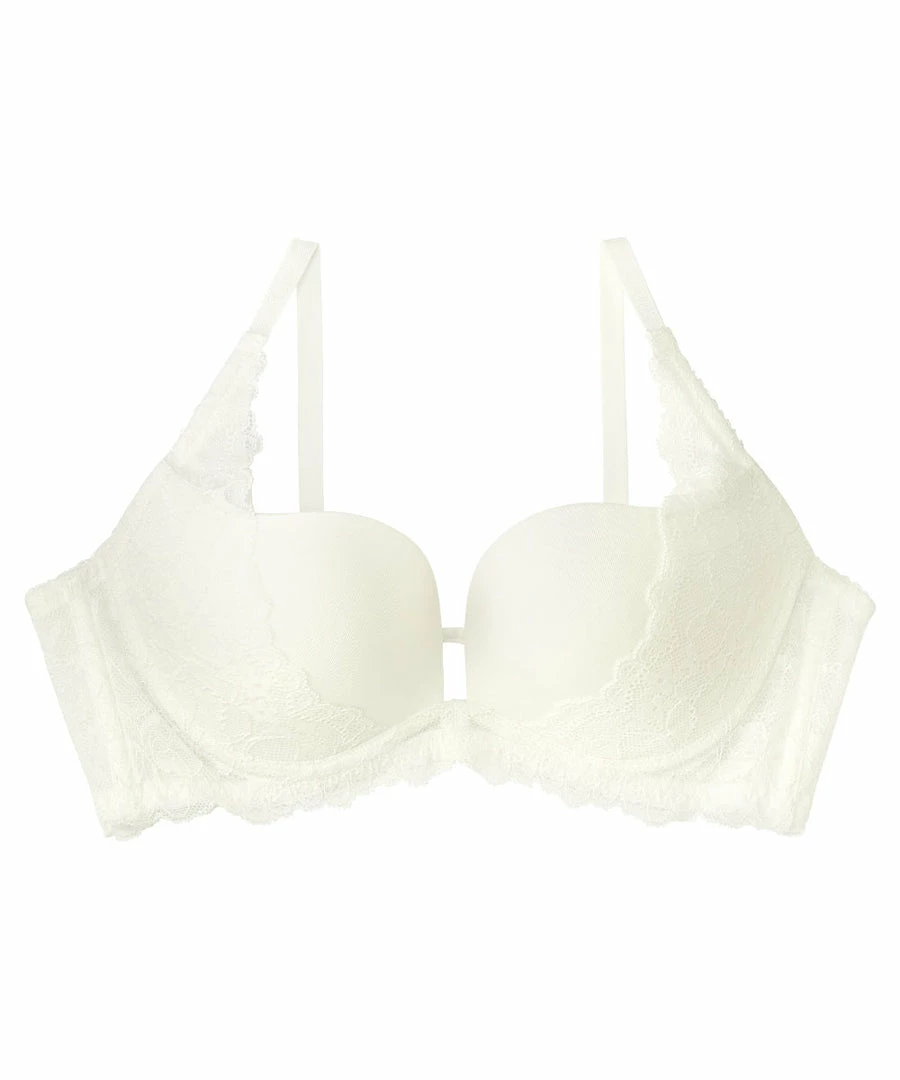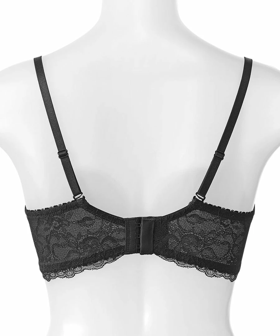 The smooth and seamless version of the “Side Slimming Lacy Push-Up Bra”—aimerfeel’s most popular product—is now available! By making a part of the cups seamless, the bra outline is less likely to show through clothes, giving the wearer a more stylish look. Compared to traditional bras, this piece is a high-sided bra that firmly keeps your sides reined in for a slim silhouette. Additionally, the bra is designed with the cups secured by cords on both sides to prevent the enhanced bustline from sagging and the lace positioned above the apex of the cups to prevent side spillage of the bust. It is also designed with an L-shaped underwire, preventing pain that often occurs when the underwire comes in contact with the center of the bust, allowing you to wear it for long periods of time comfortably! In case you are worried, the stylish round mold sillhouette ensures that the bust won’t look sharp. The back of the cup is 100% cotton, making it gentle on the skin. This side support bra, designed specifically to alleviate pain common in push-up bras, is not only perfect for daily use but also for dates and for raising your spirits.