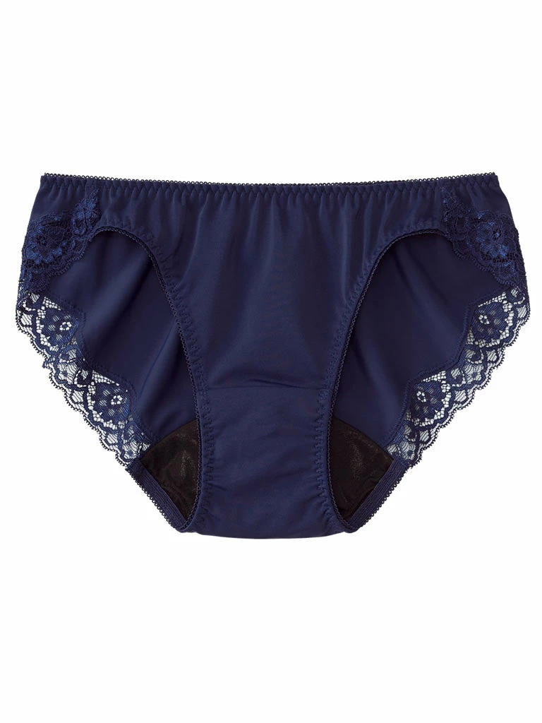 Comfortable period panty, with a smooth matte texture. With the stretchy fabric and lace, you can spend your menstrual cycle in comfort. Since the leg openings are lace, they don’t show through your bottoms.