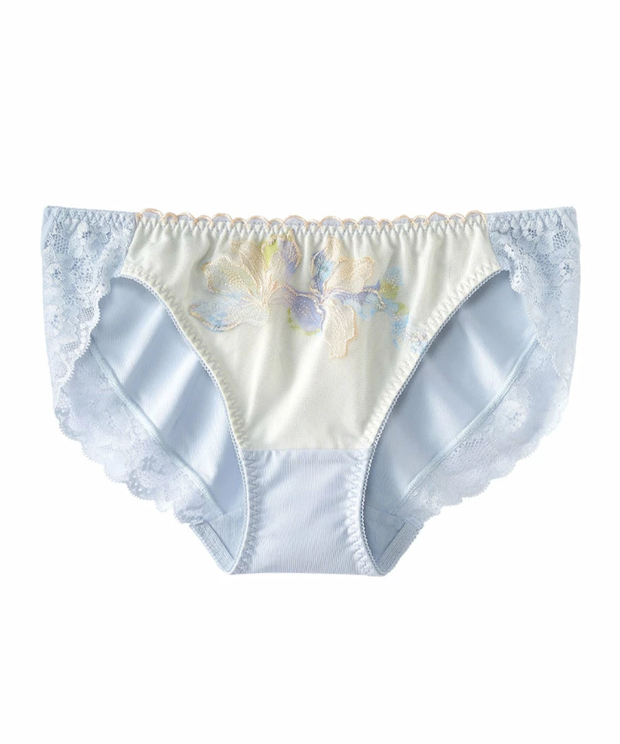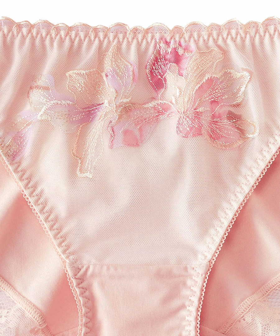 Lily print with pale colors and an arty touch. The added layer of lace creates a soft and feminine nuance.