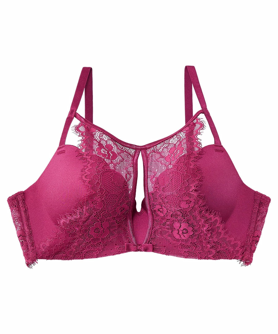 This soft type, wireless Maximum Boost Bra (R) is gentle on the skin. The feminine design incorporates delicate floral lace overlaid on three-dimensional molded cups.